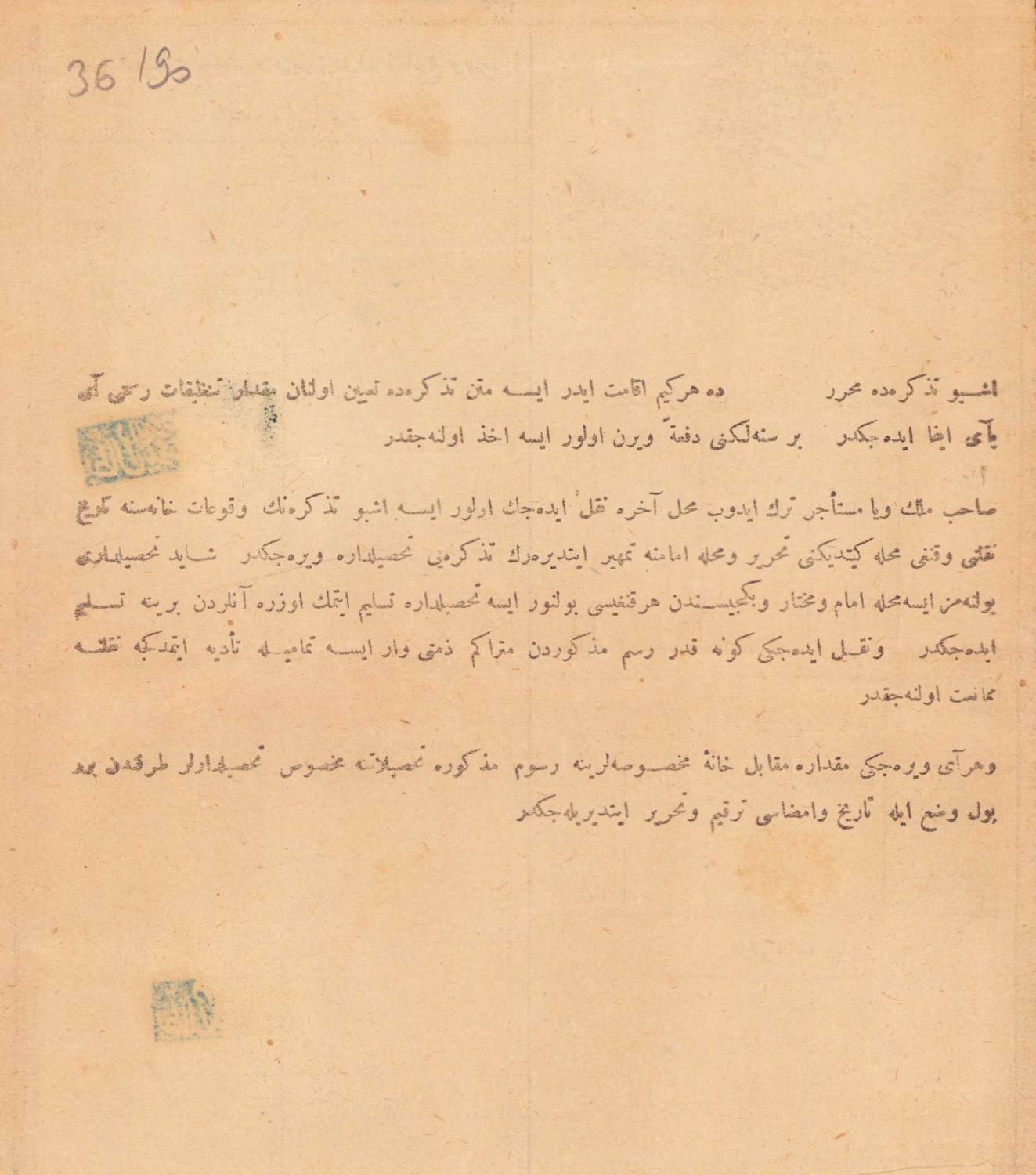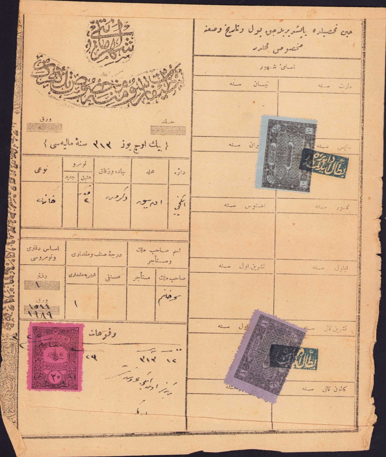 Osmanlıca Şehremaneti, Tenzifat Rüsumuna Mahsus Tezkere, 1313 tarihli, 23x17 cm