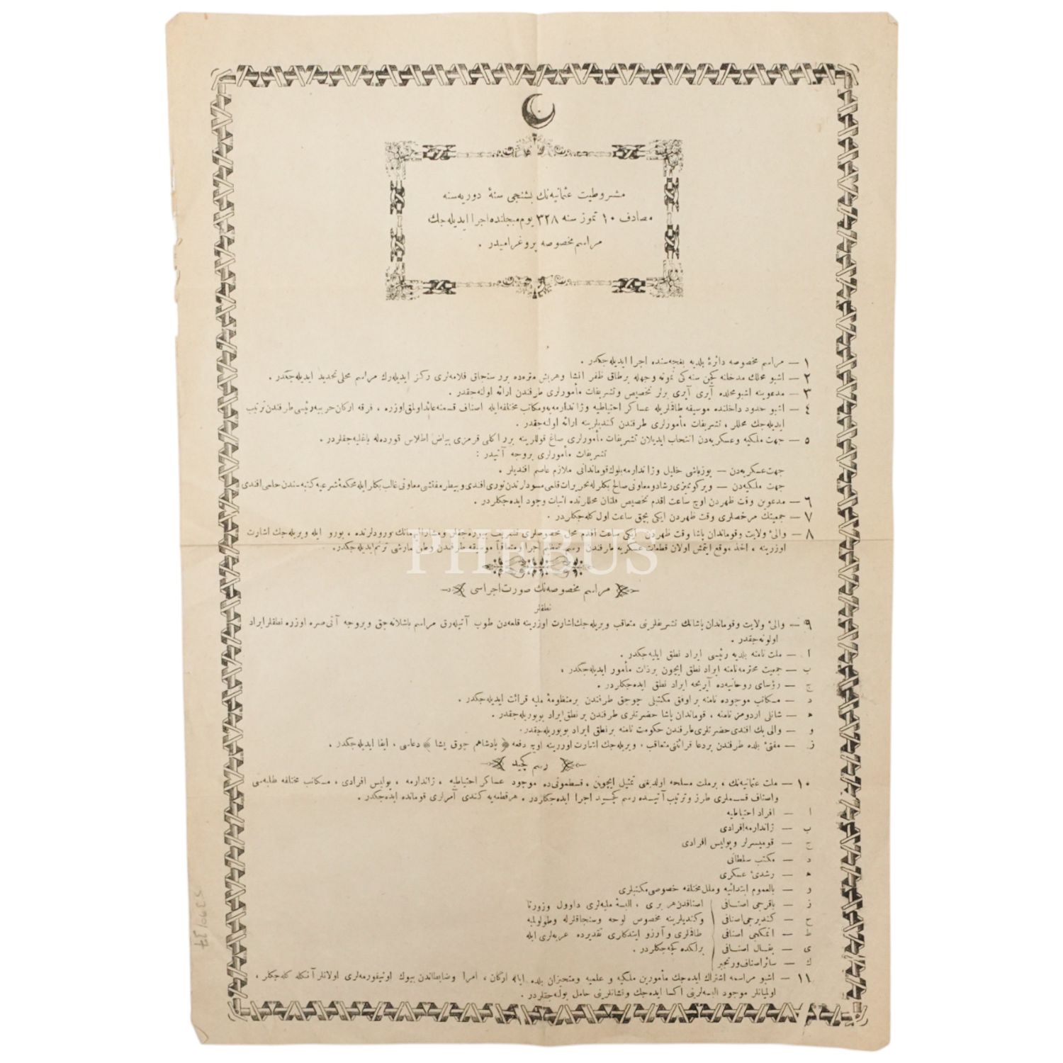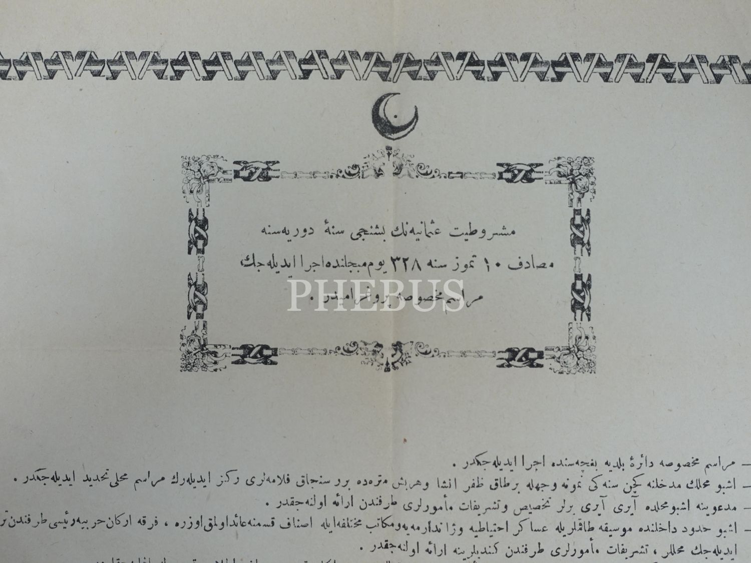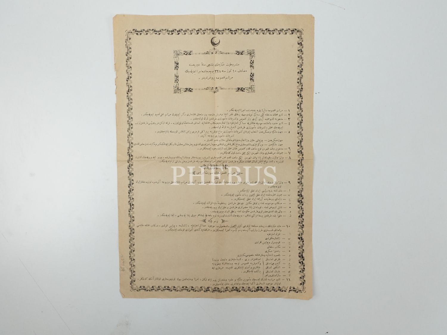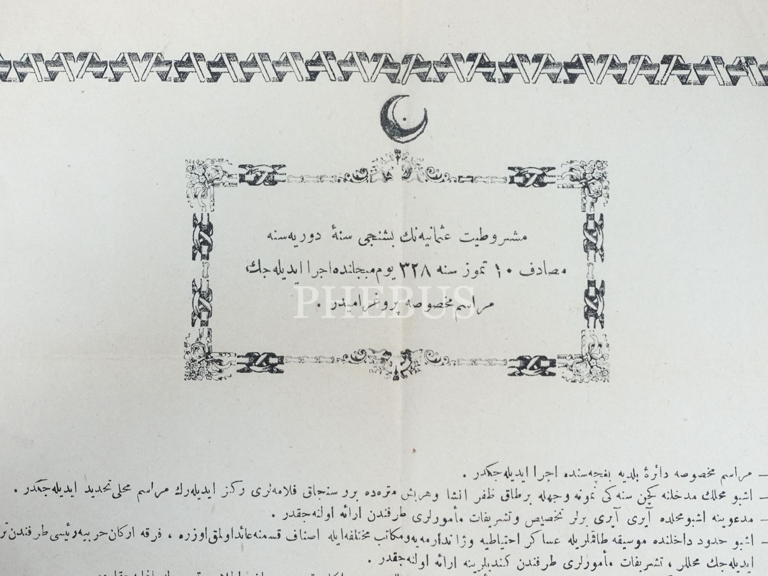 Meşrutiyet´in 5. yıldönümü kutlamaları için düzenlenen merasimin programı, 29x41 cm...