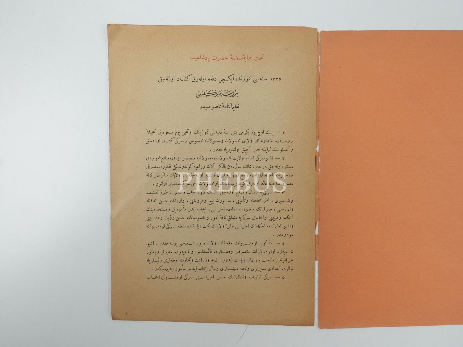 Sultan İkinci Abdülhamid´in himayesinde, 1909 senesinde gerçekleşen Bursa Sergisi´nin talimatnamesidir.