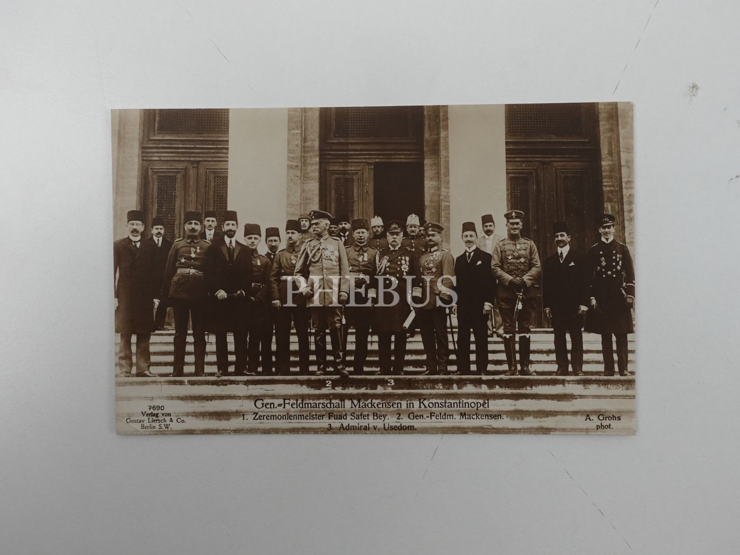 Birinci Dünya Savaşı´nda Alman ordusunda mühim vazifelerde bulunan "Son Süvari" lakaplı Mareşal August von Mackensen ve maiyeti İstanbul´da (1916), phot. A. Grohs - ed. Gustav Liersch & Co., 14x9 cm...