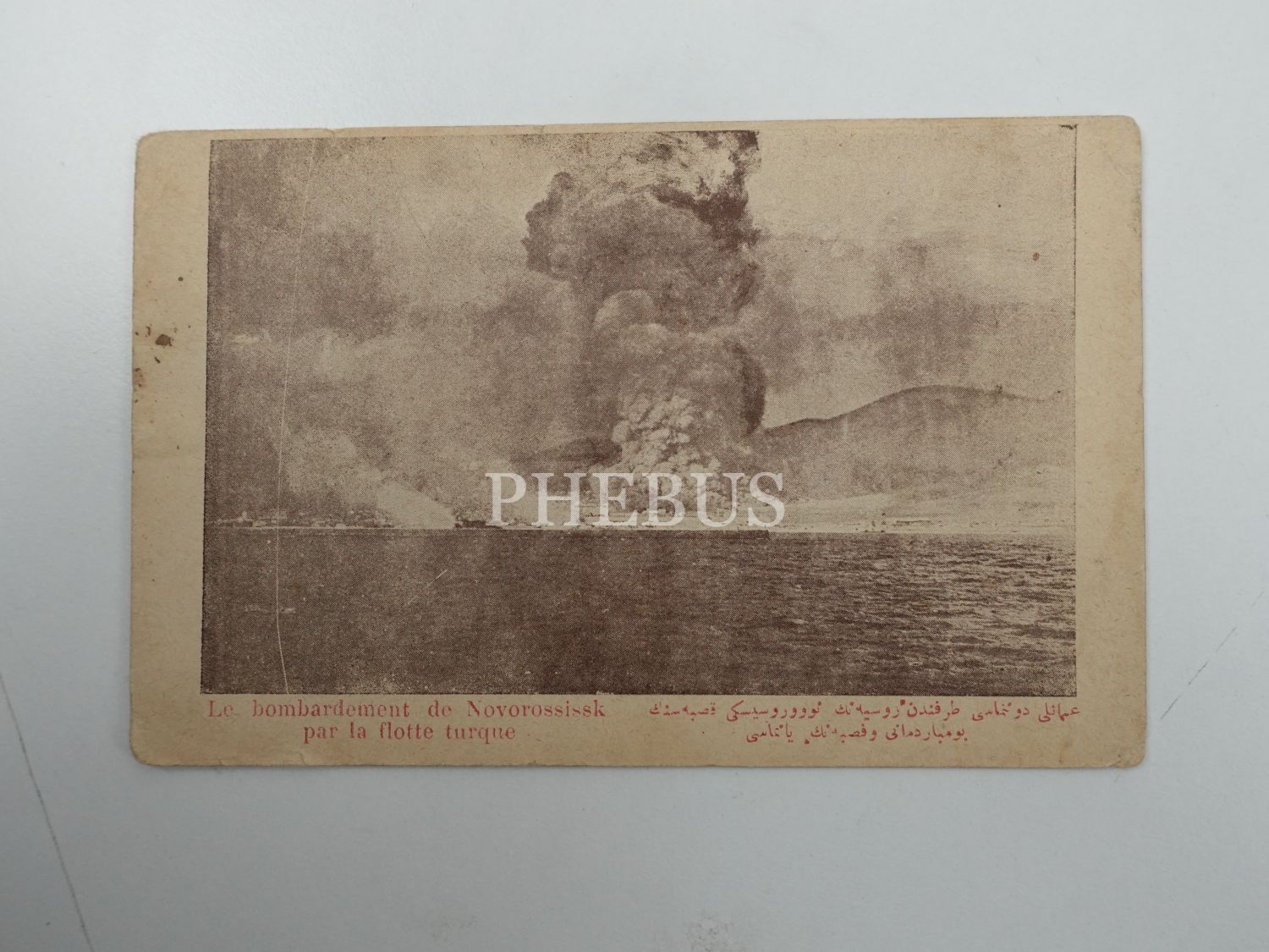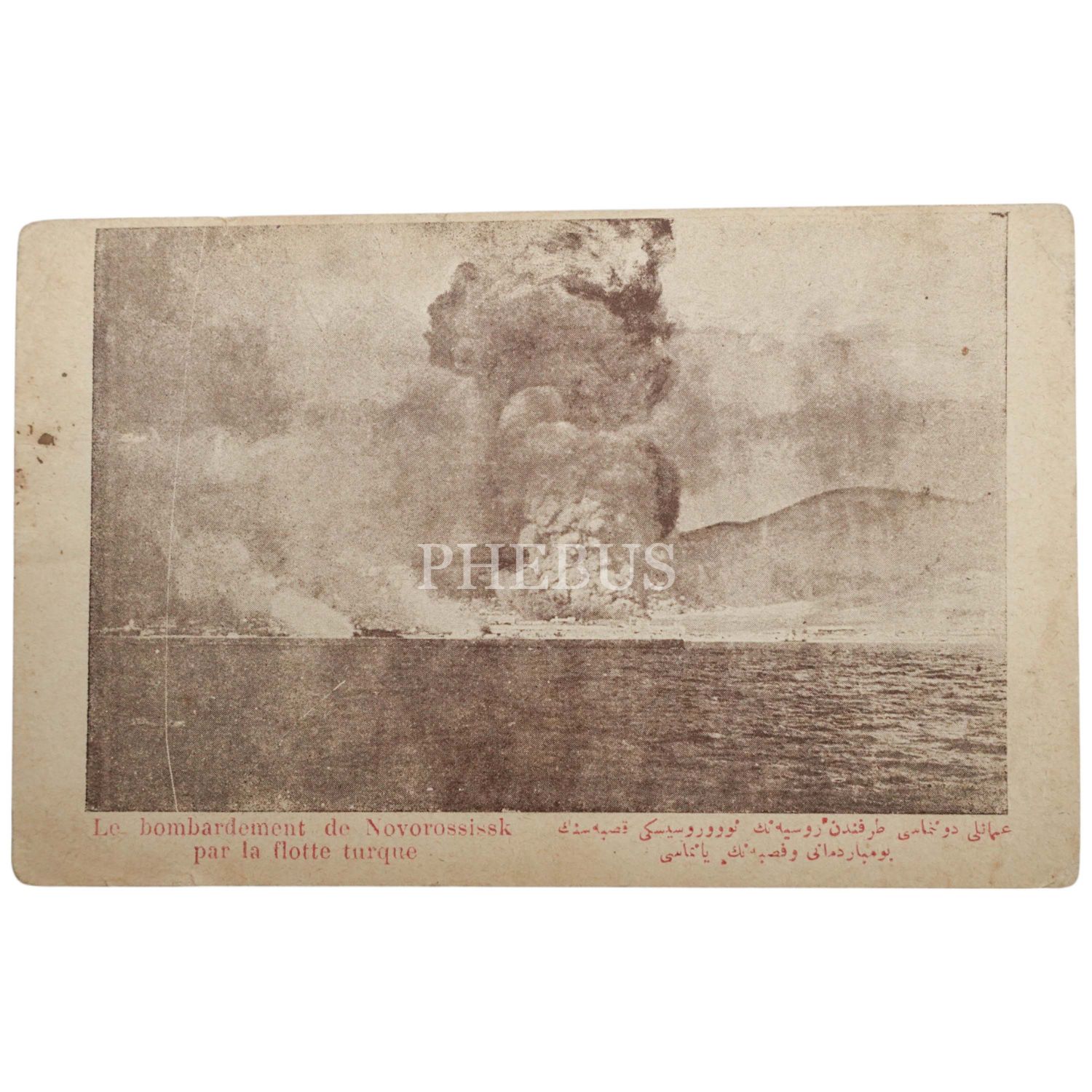 Müdafaa-i Milliye Cemiyeti neşriyatından, Osmanlı Donanması tarafından bombardımana tutulan Rusya´nın Novorossiysk şehrinin görüldüğü kartpostal, 14x9 cm...