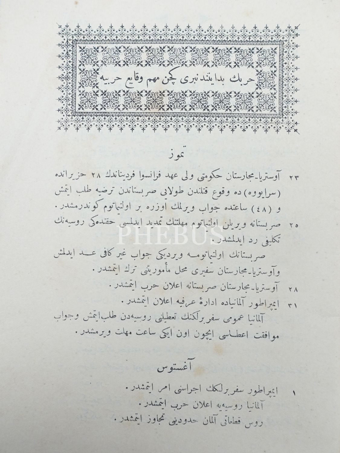 HARBİN BİDAYETİNDEN BERİ GEÇEN MÜHİM VAKA-Yİ HARBİYE, 62 sayfa, 14x22 cm...