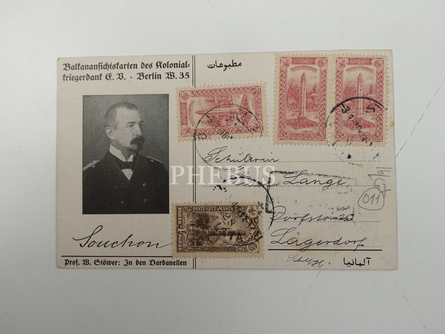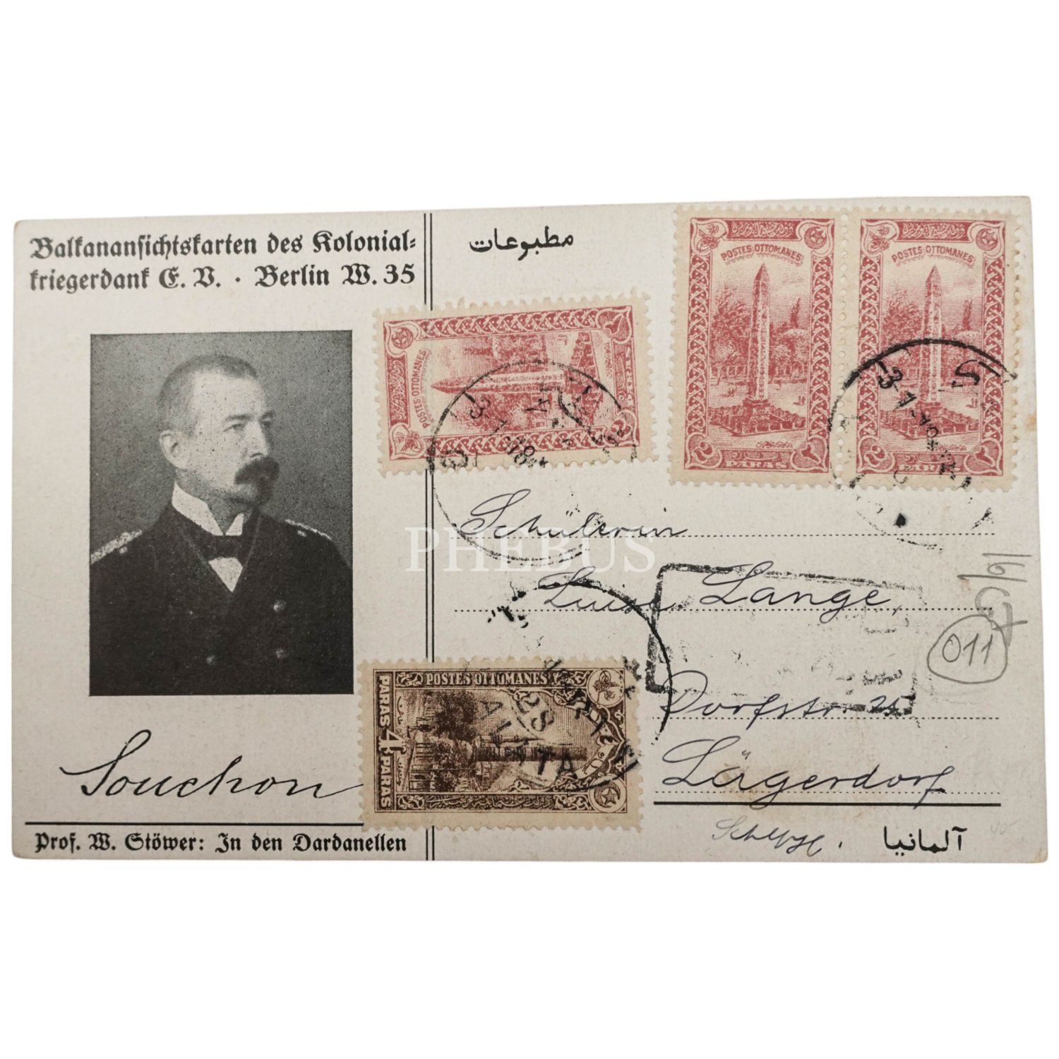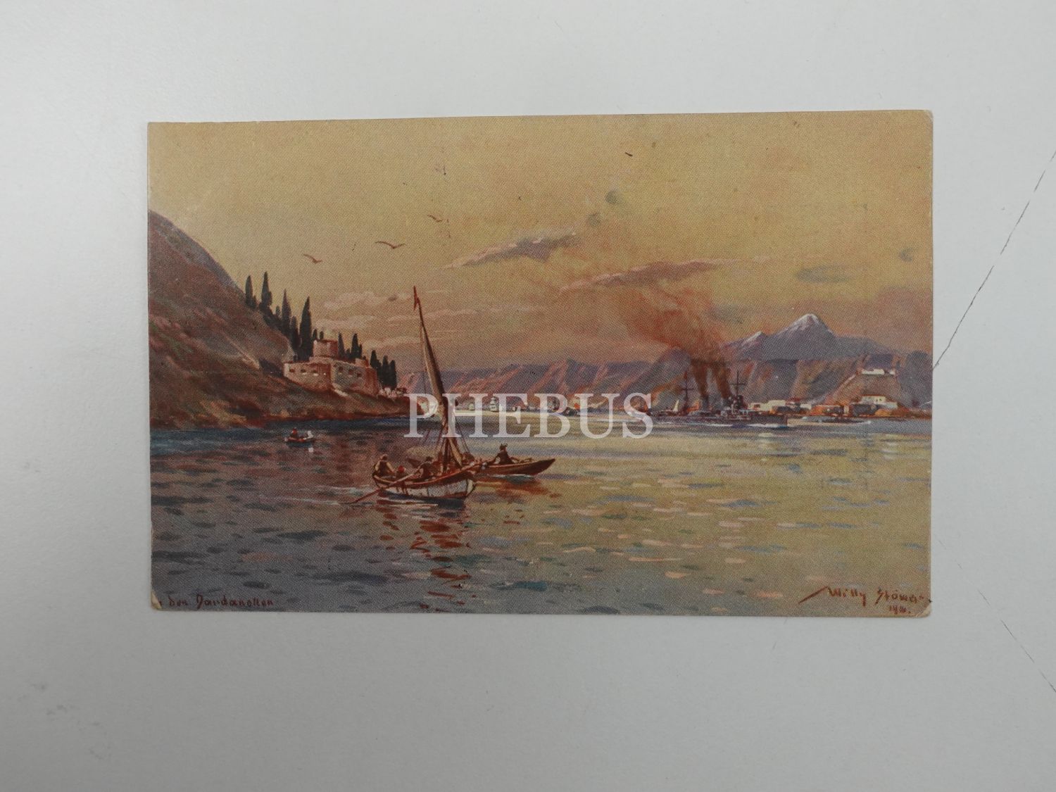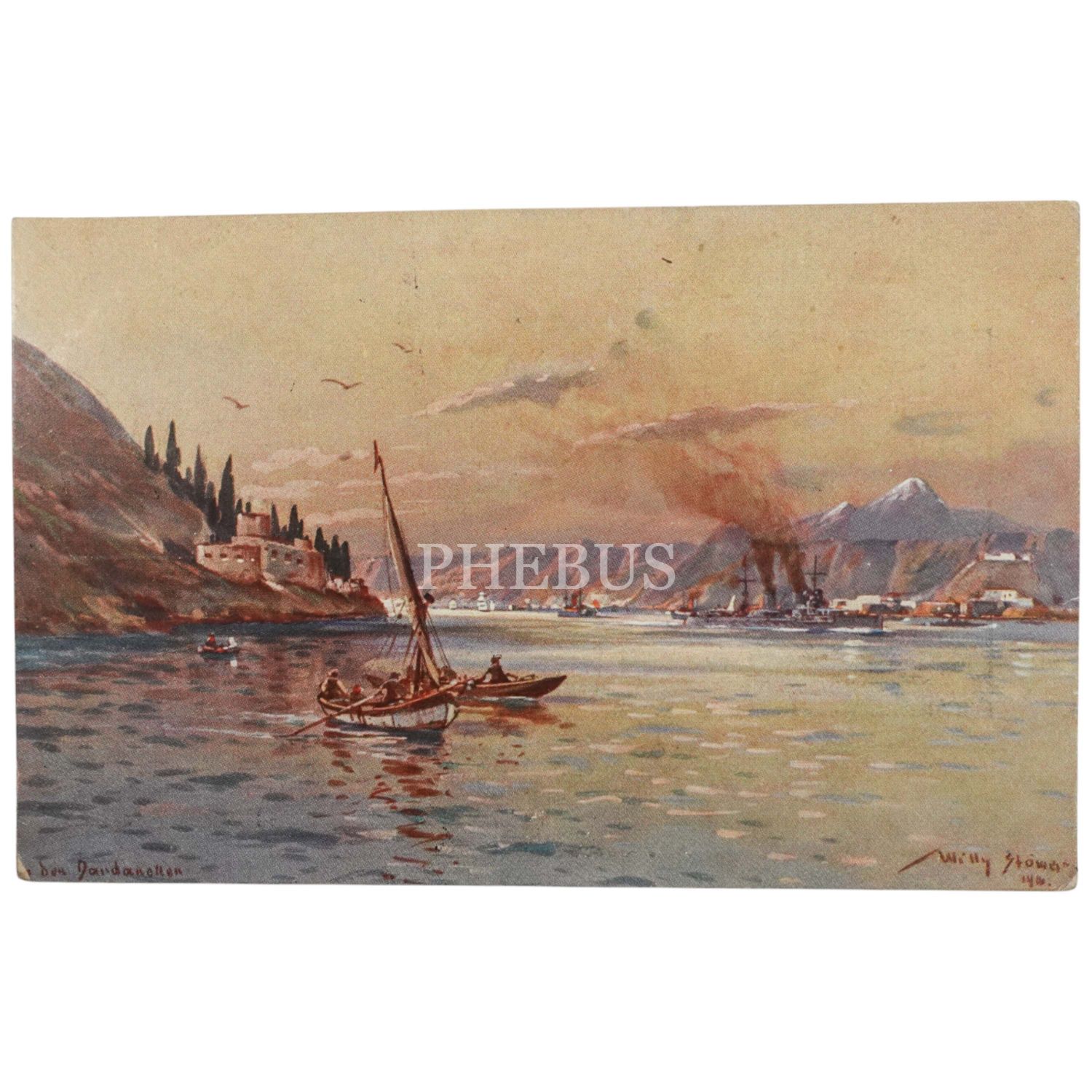 Alman ressam Willy Stöwer´in Çanakkale Boğazını resmettiği bir çalışmasına yer verilen kartpostal, 14x9 cm...