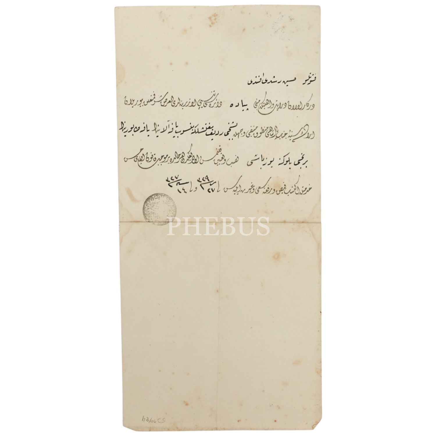 Hüseyin Rüşdü Efendi´nin Yafe Alayı´na Yüzbaşı olarak atandığına dair evrak, 1327, 20x41 cm...