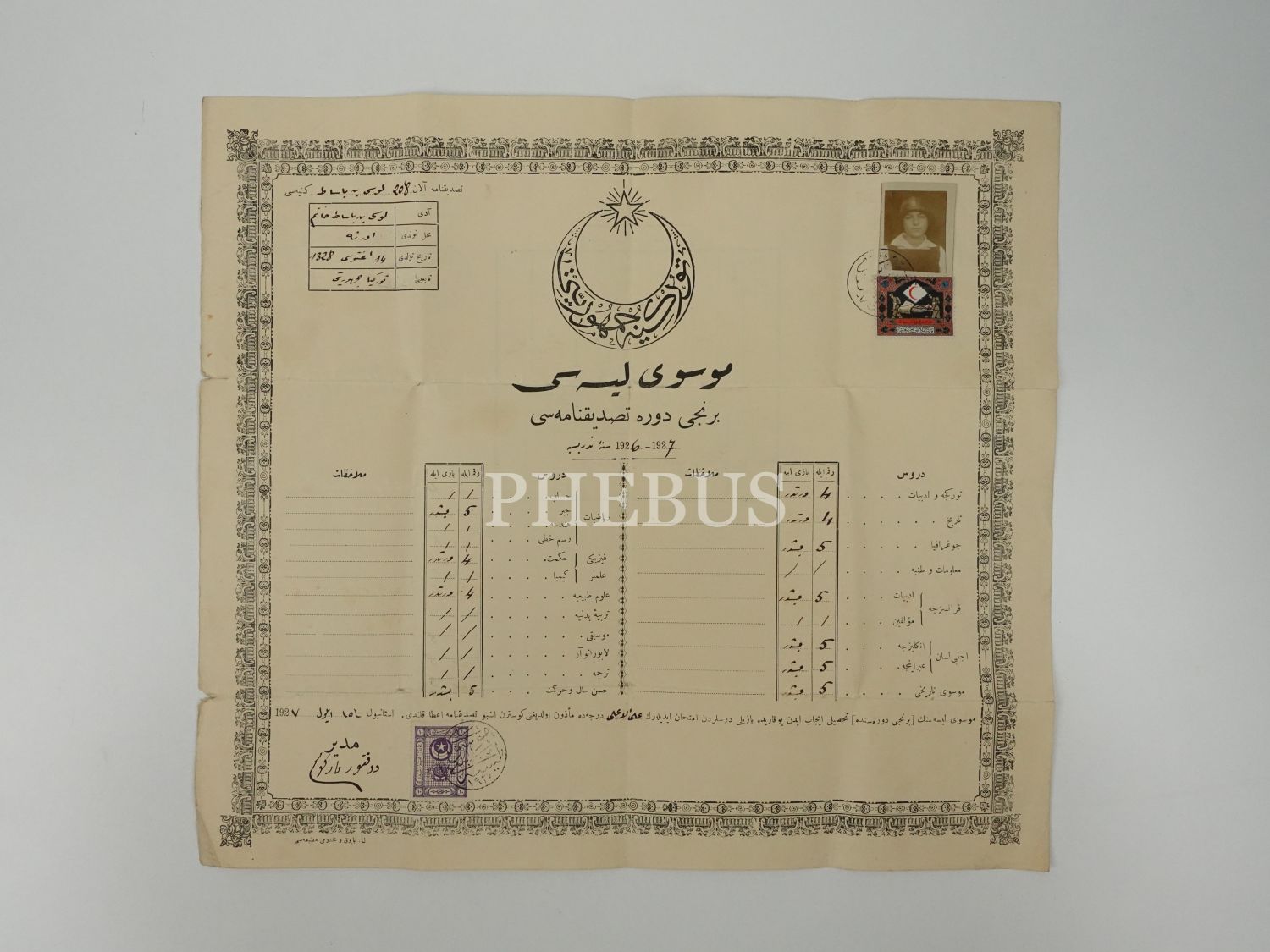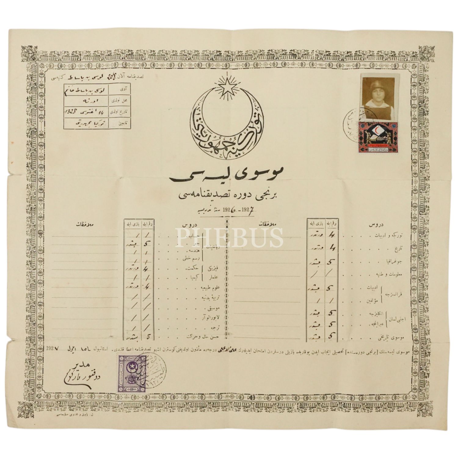 Musevi Lisesi´nden mezun olan Lusi Hanım´ın diploması, 1927, 36x33 cm...