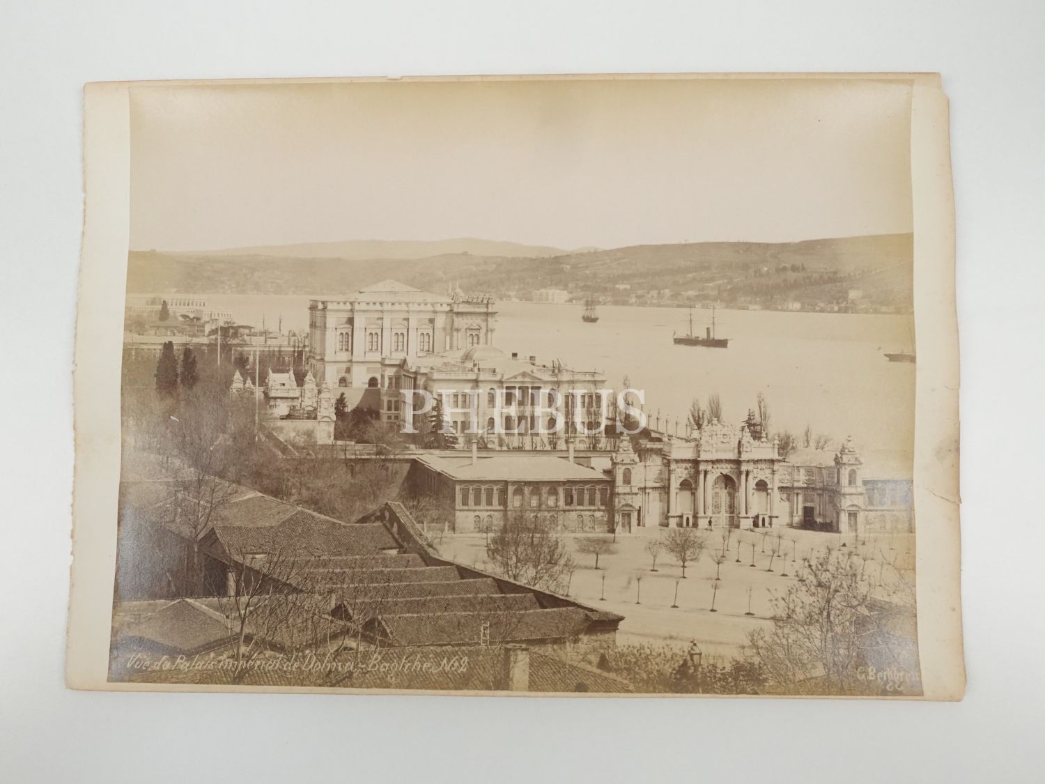 Dolmabahçe Sarayı manzarasının görüldüğü albümin baskı fotoğraf, editör: C. Berggren, 28x21 cm...