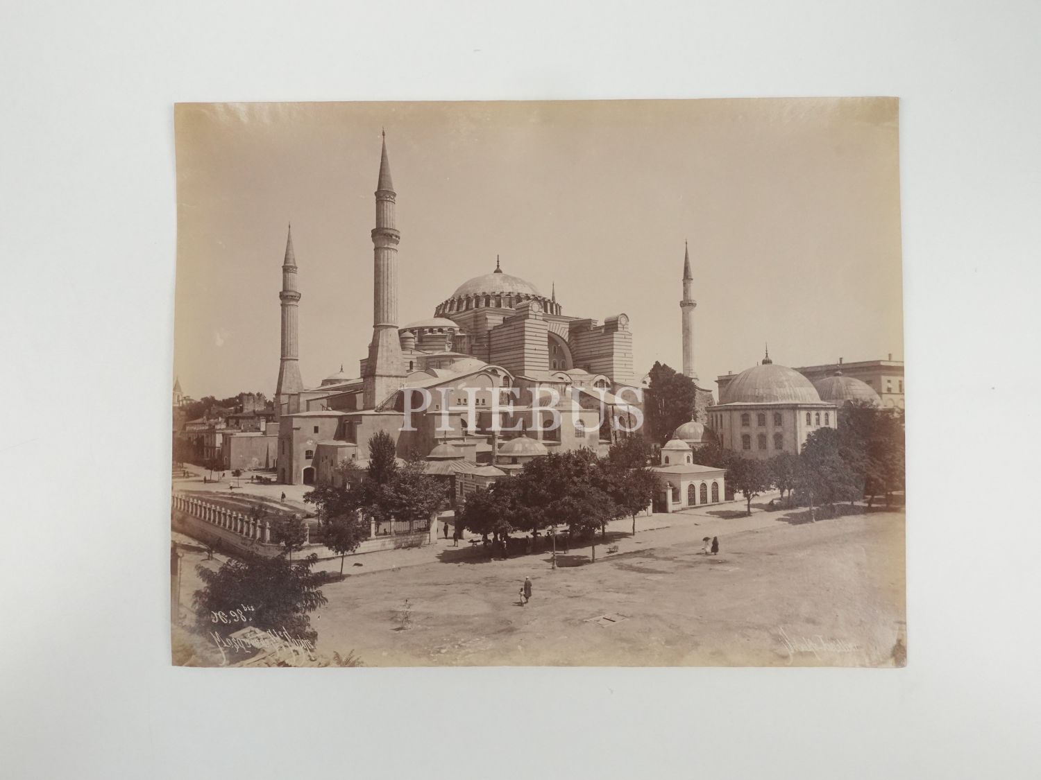Osmanlı dönemi İstanbul´unun ünlü fotoğrafçısı Pascal Sebah´ın objektifinden Ayasofya Camii´nin albümin baskı fotoğrafı, 27x21 cm...