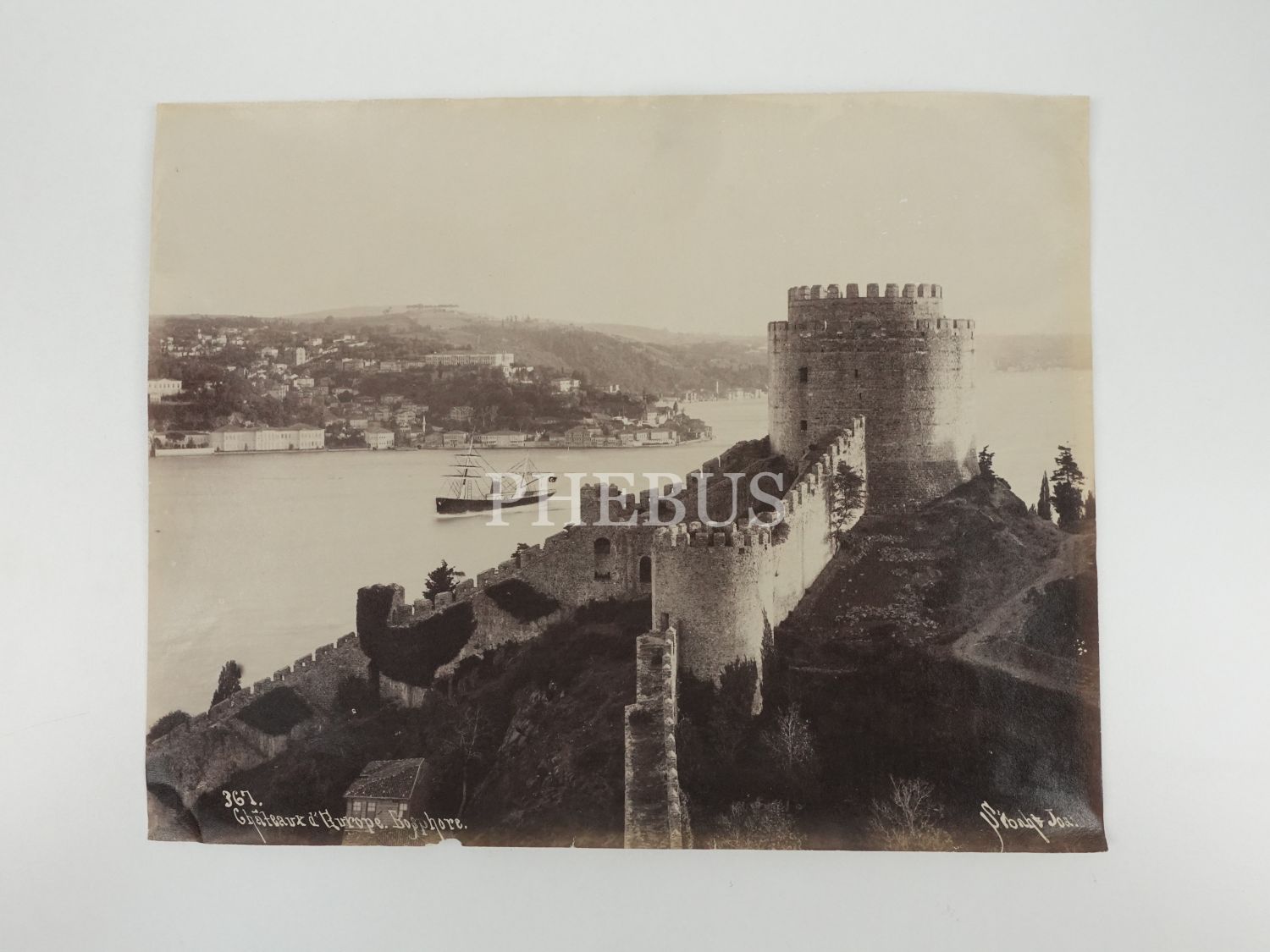 Osmanlı dönemi İstanbul´unun ünlü fotoğrafçısı Pascal Sebah´ın objektifinden Rumeli Hisarı üzerinden Boğaz manzarası, 27x20 cm...