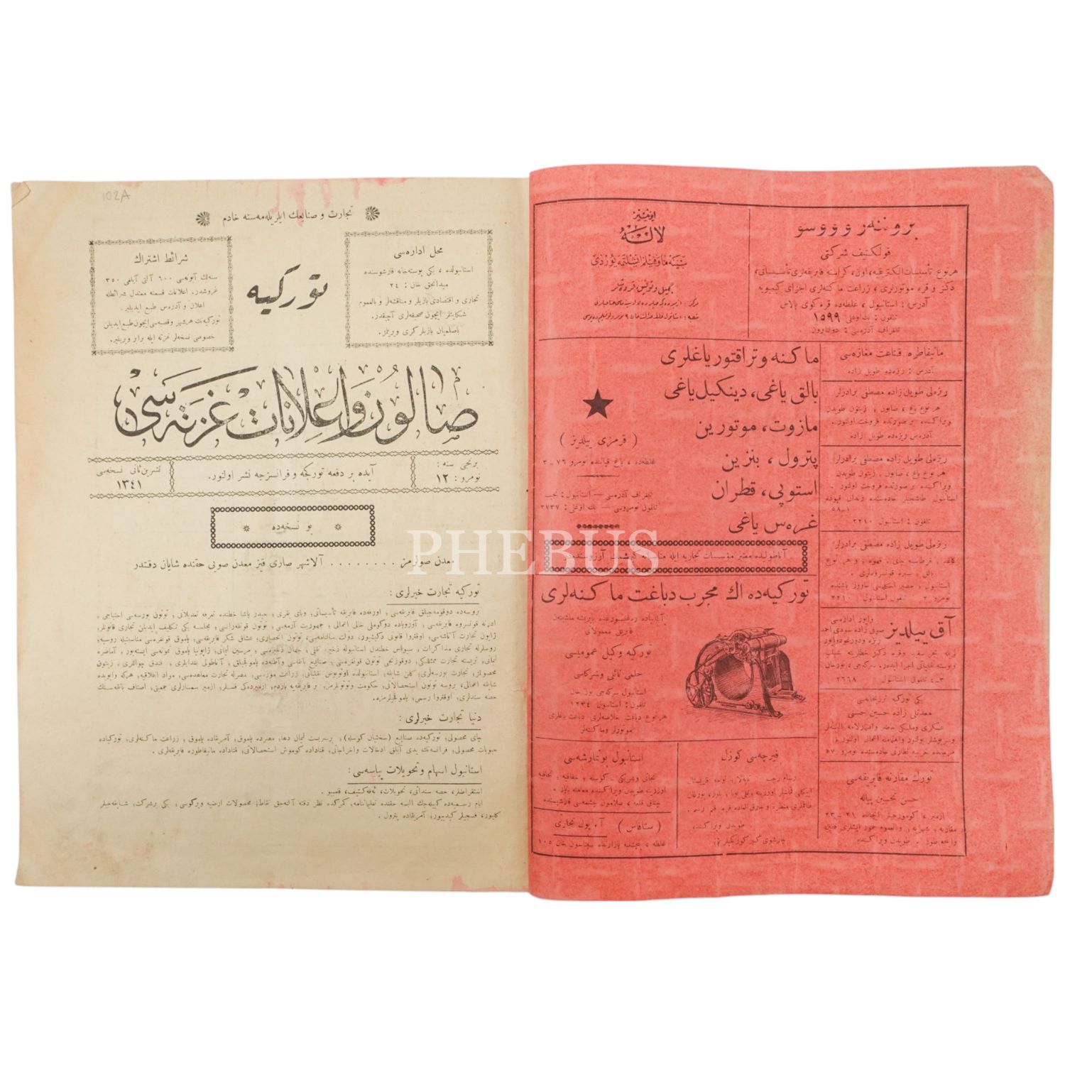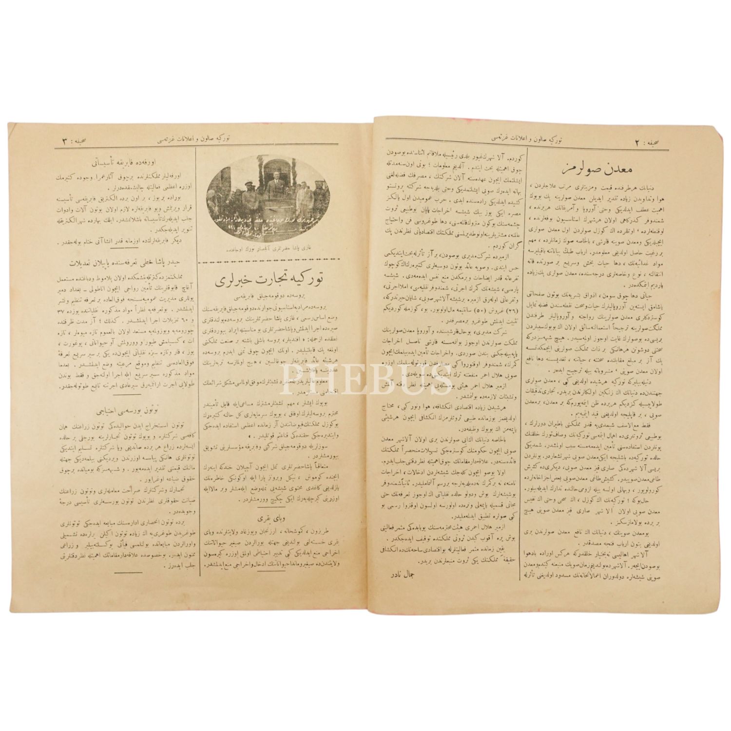 İç sayfalarında Mustafa Kemal Atatürk´ün Akhisar Türk Ocağı ziyaretinden haber verildiği TÜRKİYE SALON VE İLANAT GAZETESİ´nin 1341 tarihli 12. sayısı, 23x31 cm...