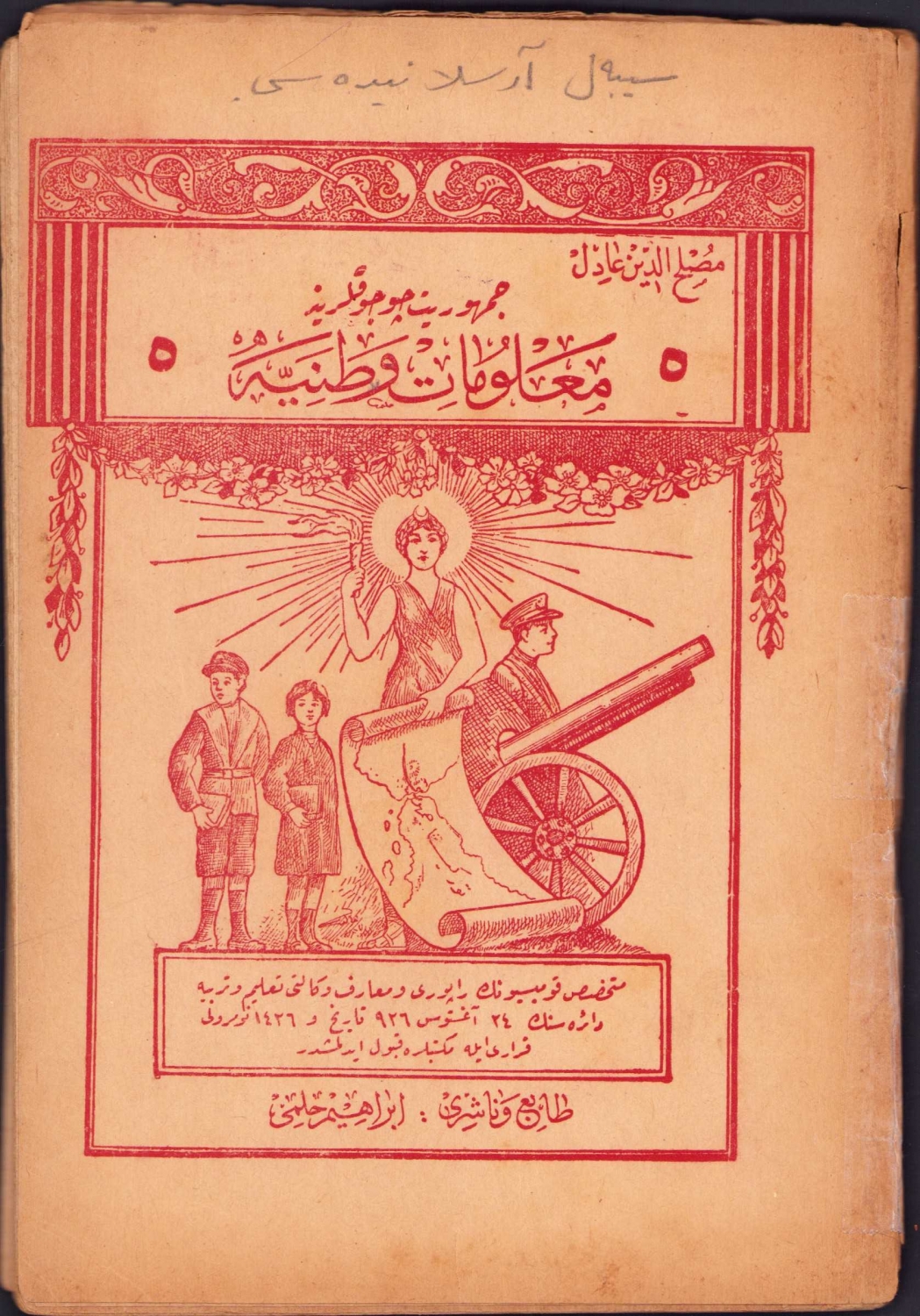 Osmanlıca Cumhuriyet Çocuklarına Malumat-ı Vataniyye - ilk mektep beşinci sınıf, Muslihiddin Adil, ikinci baskı, Orhaniye Matbaası, İstanbul, 1928, resimli, 96 sayfa, sırtı tamirli, 13x19 cm