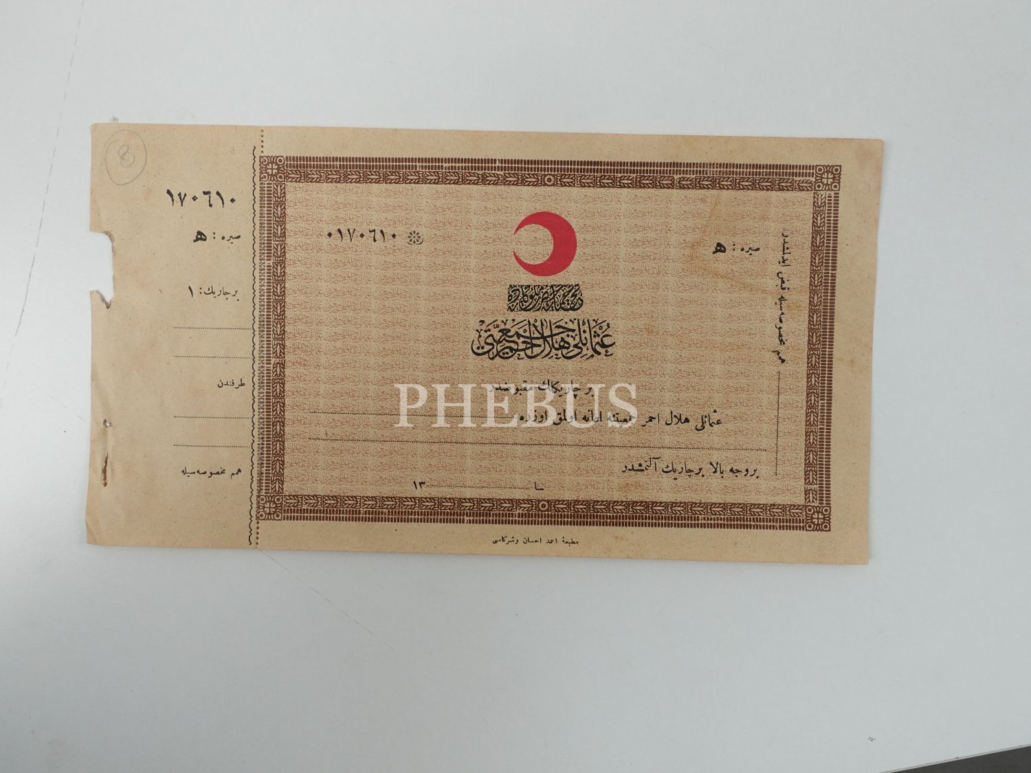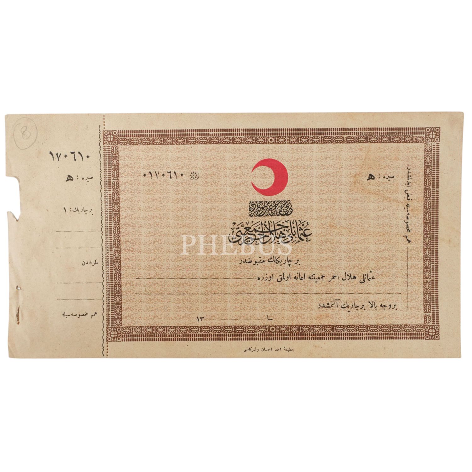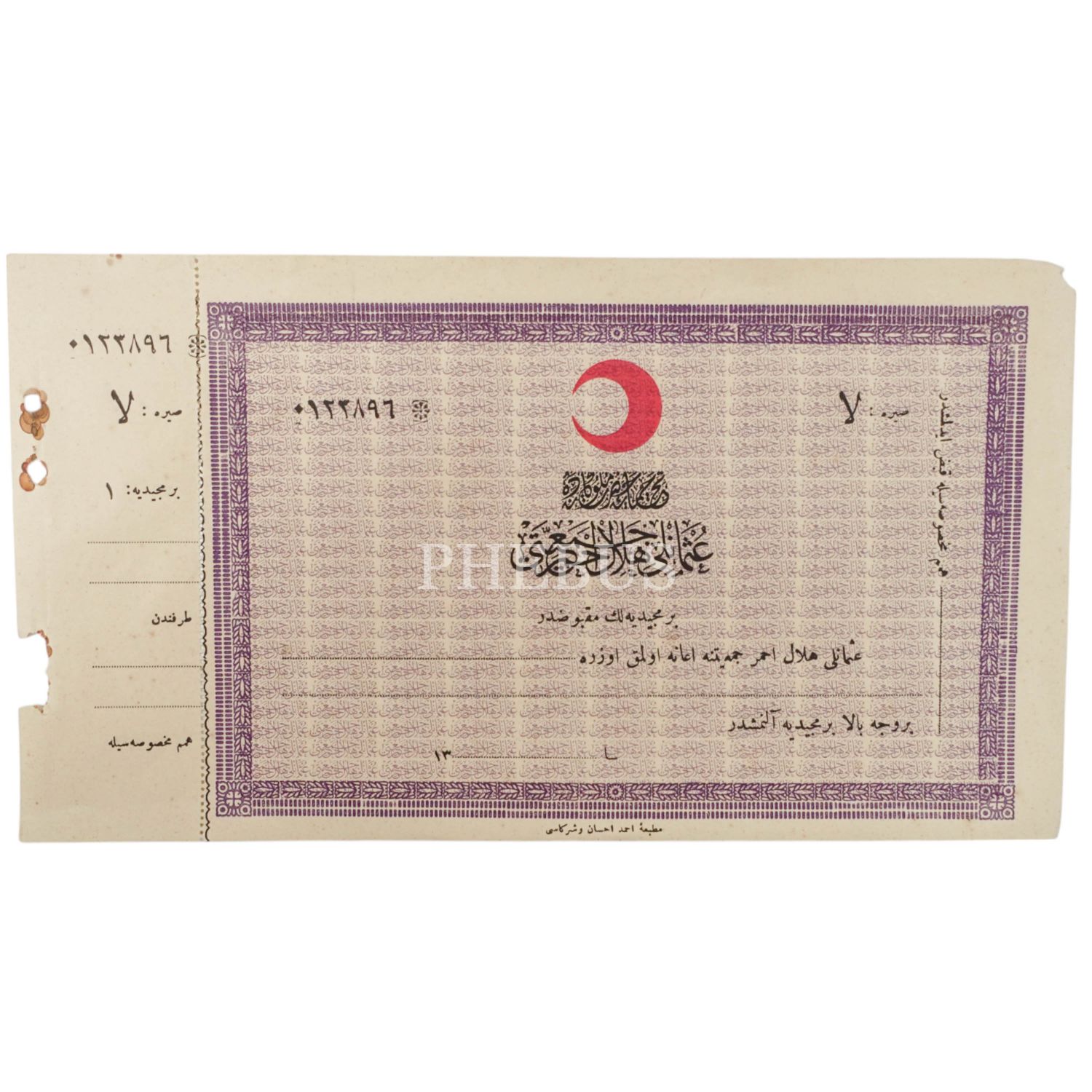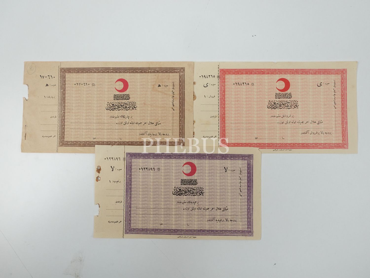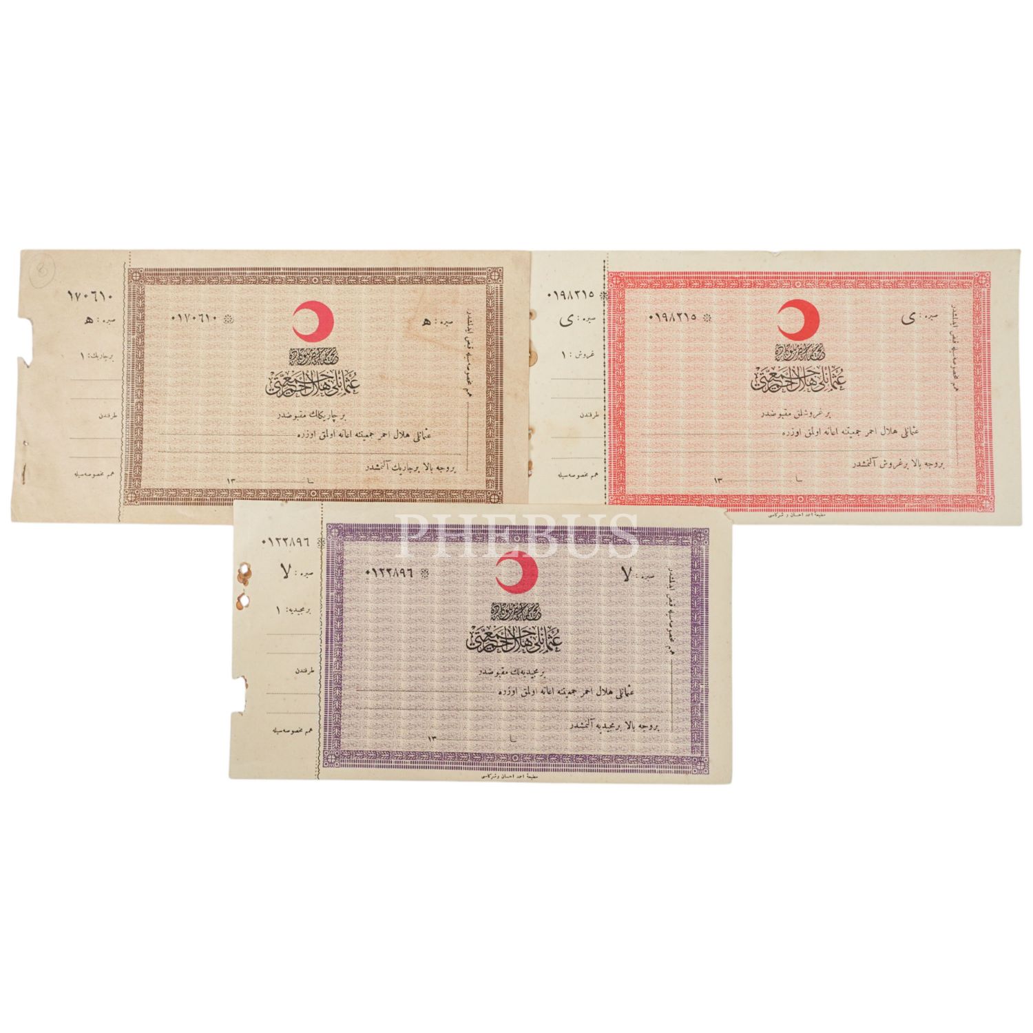 Osmanlı Hilal-i Ahmer Cemiyeti´nin 3 adet bağış makbuzu, 27x14 cm...