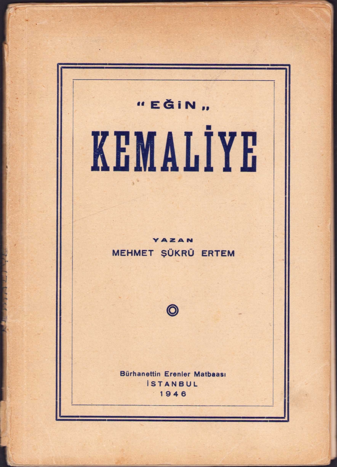 "Eğin" Kemaliye, Mehmet Şükrü Ertem, Bürhaneddin Erenler Matbaası, İstanbul, 1946, resimli, sırtı haliyle, bazı sayfalarda kopuk, 87 sayfa, 13x19 cm