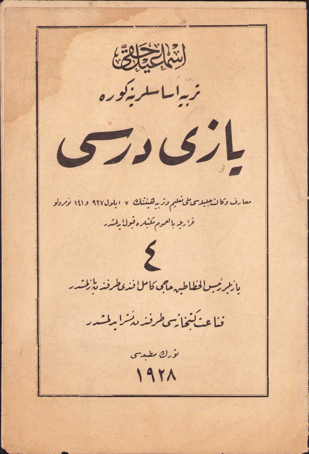 Osmanlıca Terbiye Esaslarına Göre Yazı Dersi 4, İsmail Hakkı, Türk Matbaası, 1928, 12 sayfa, 16x23 cm