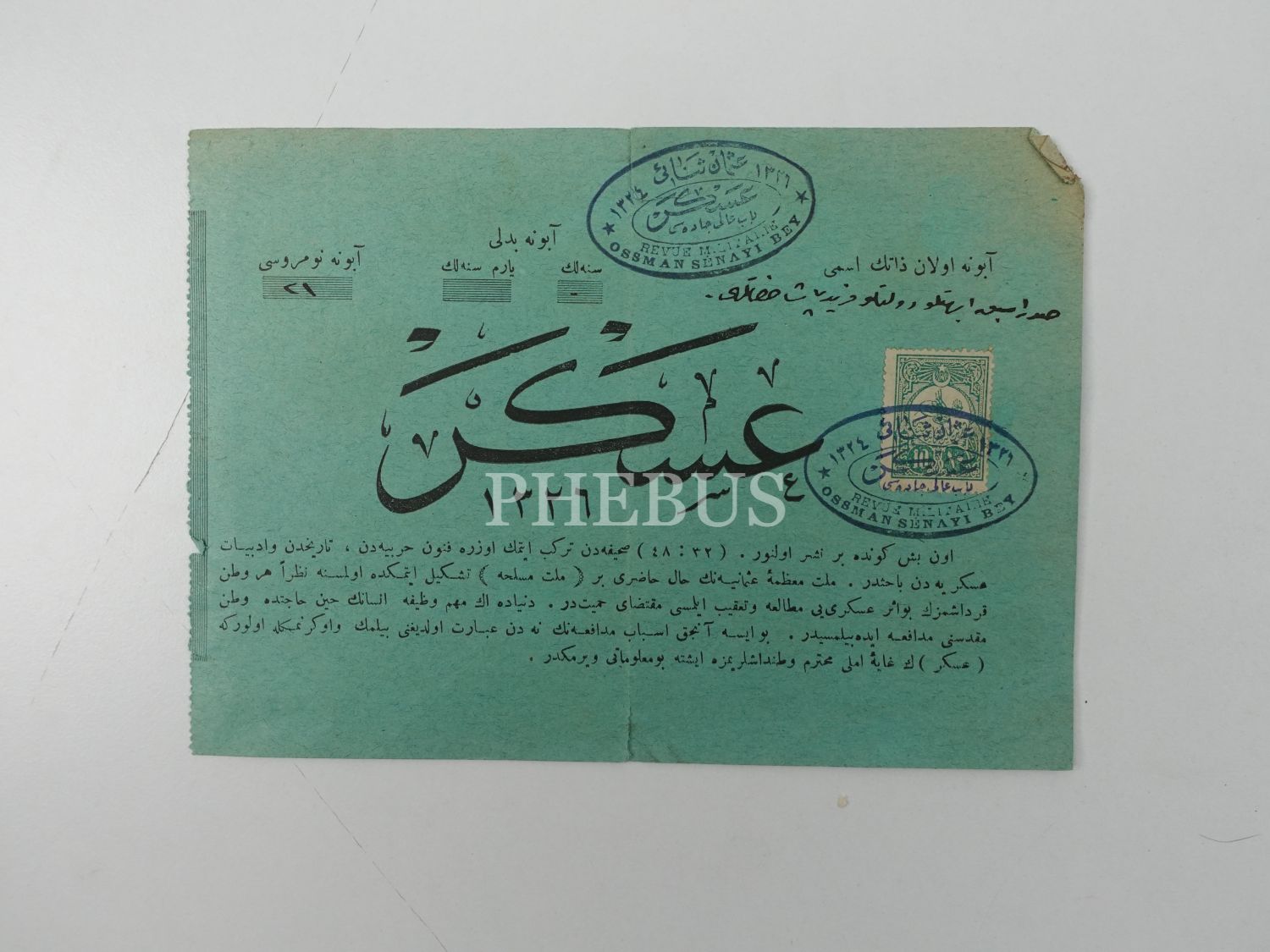 "ASKER" dergisinin abonelik evrakı, 17x13 cm...