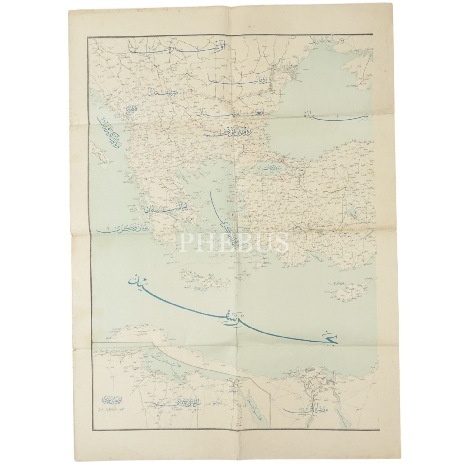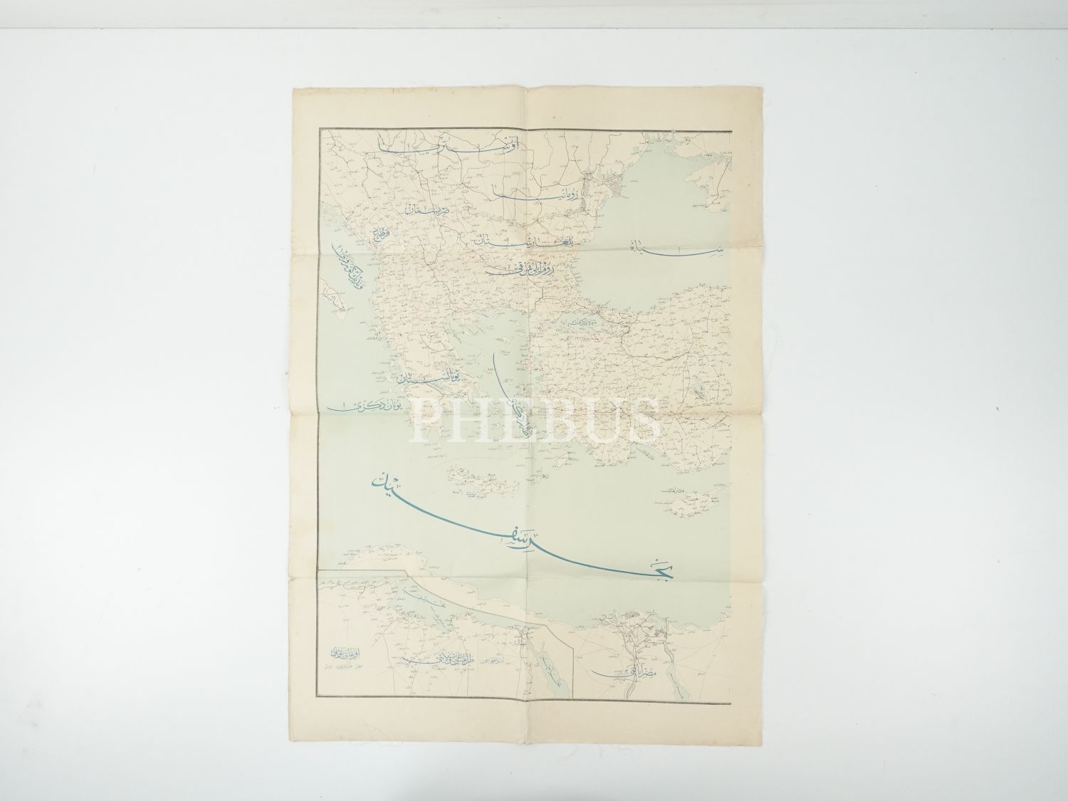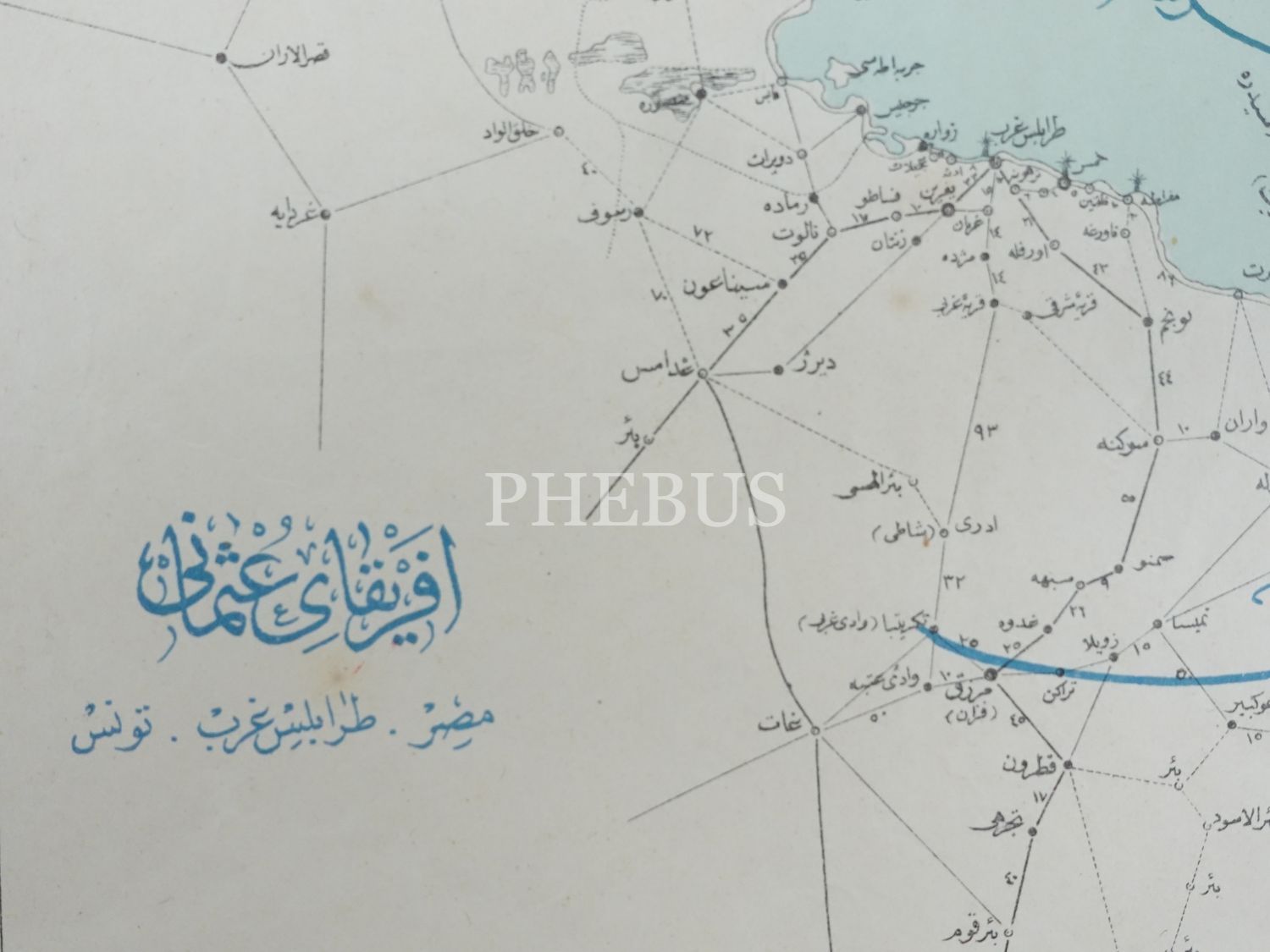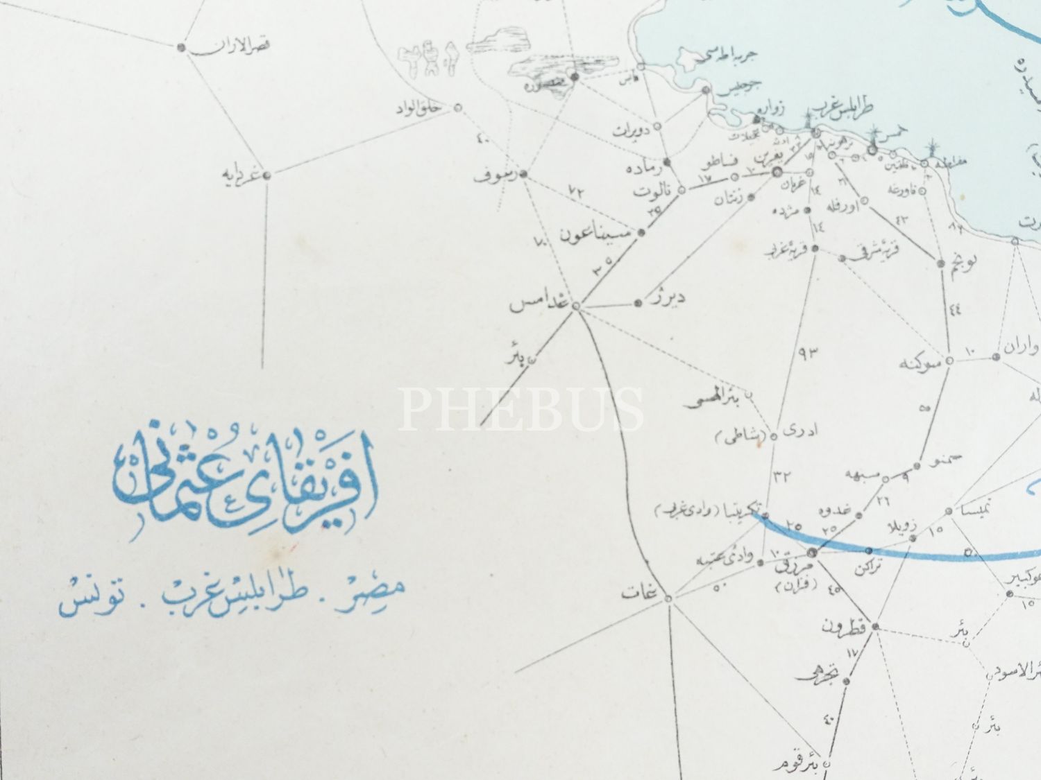 Osmanlıca Kuzey Afrika, Batı Anadolu ve Avrupa haritası, 54x76 cm...