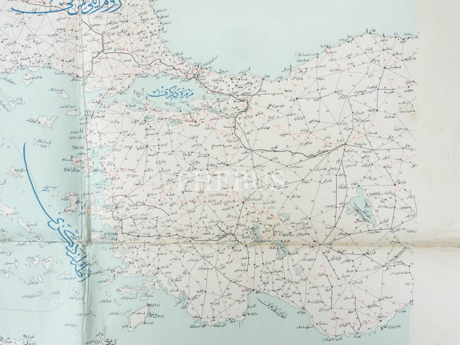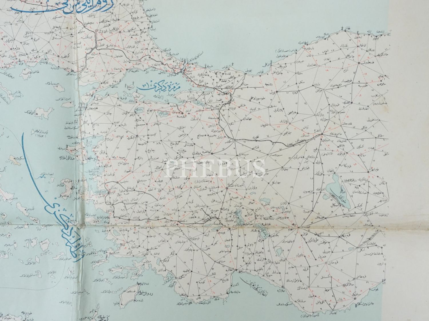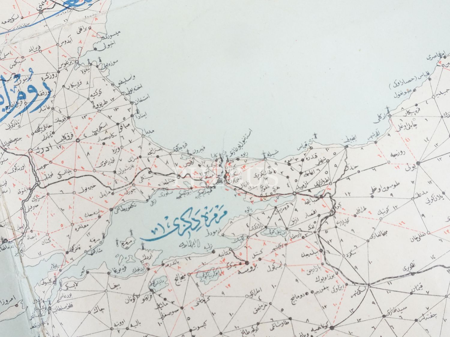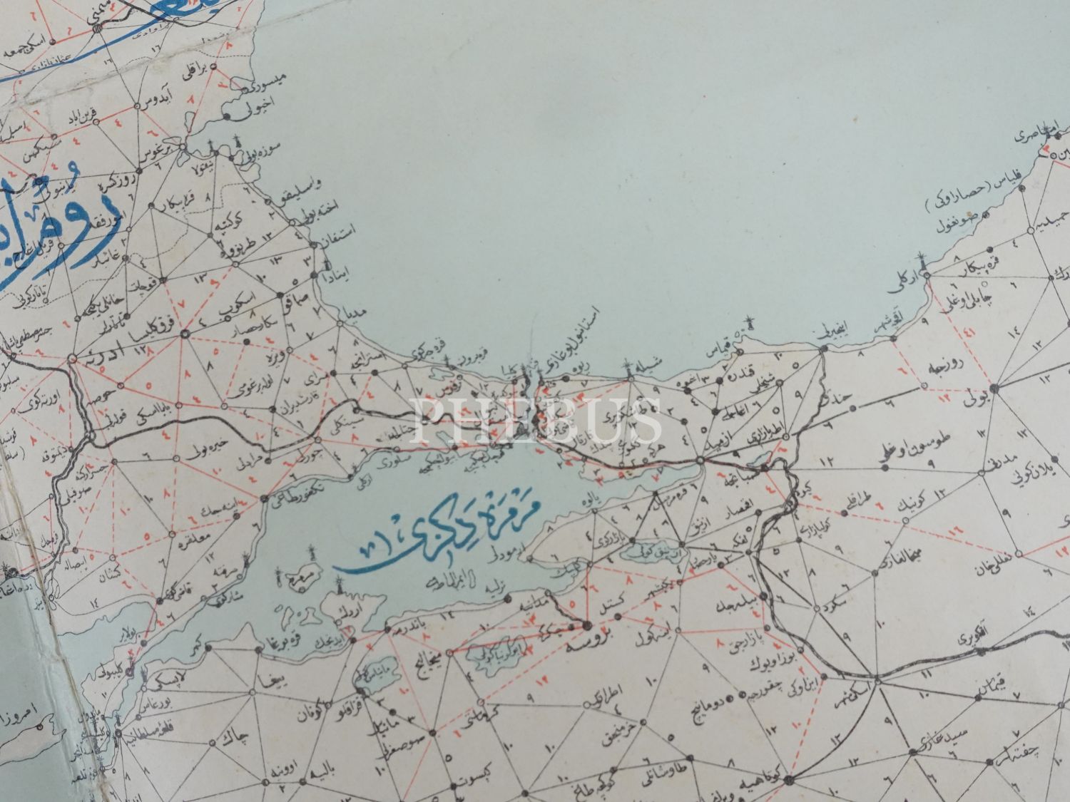 Osmanlıca Kuzey Afrika, Batı Anadolu ve Avrupa haritası, 54x76 cm...