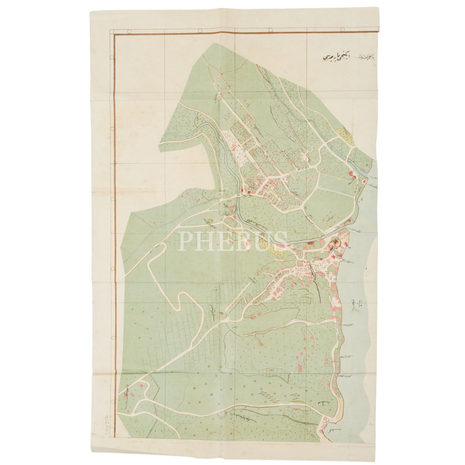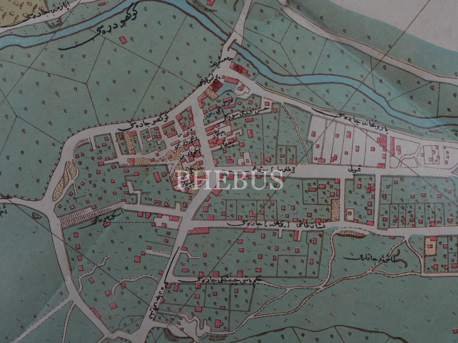 İstanbul Belediyesi tarafından Necip Bey´e hazırlatılan ve "Necip Bey haritaları" namıyla meşhur olan haritaların 7. paftanın 2. parçası, Rumelihisarı, 40x63 cm...