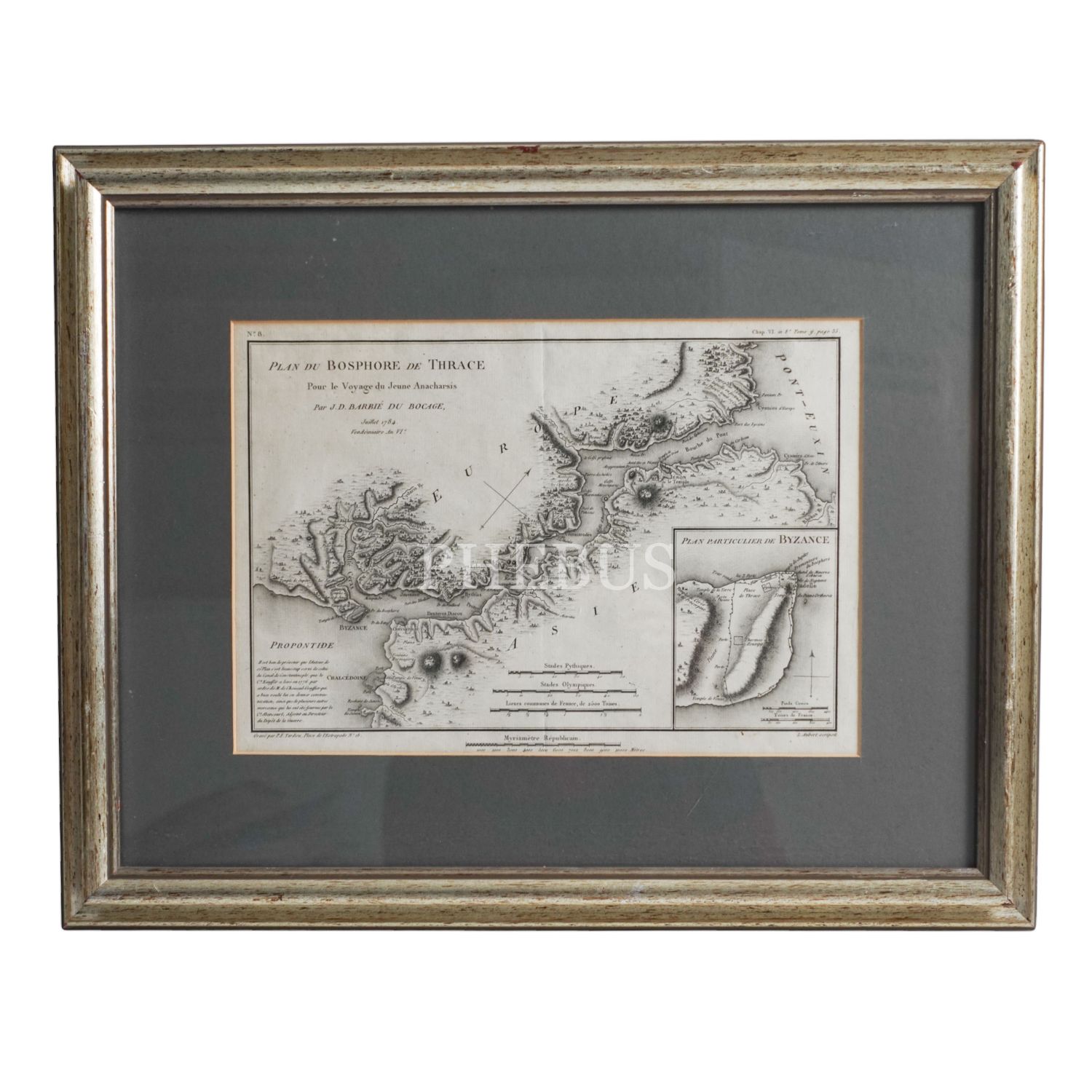"Plan du Bosphore de Thrace" başlıklı İstanbul Boğazı´nın gravür haritası, 55x44 cm...