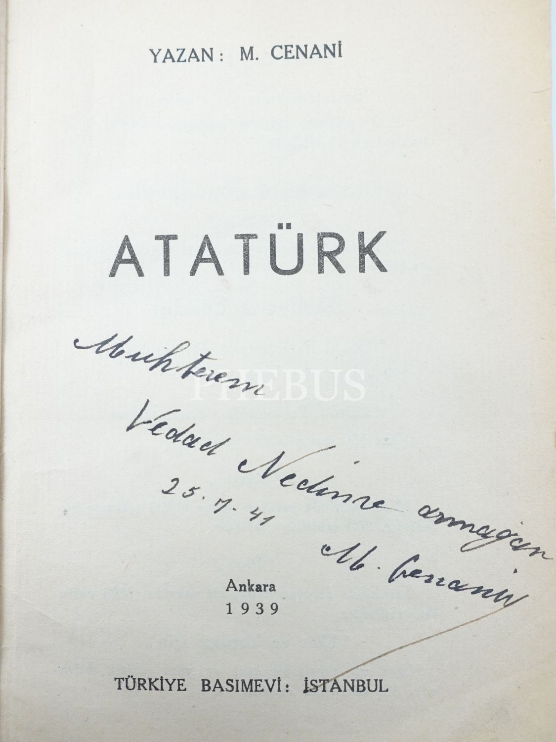 ATATÜRK, M. Cenani, 1939, Türkiye Basımevi, 79 sayfa, 14x20 cm...