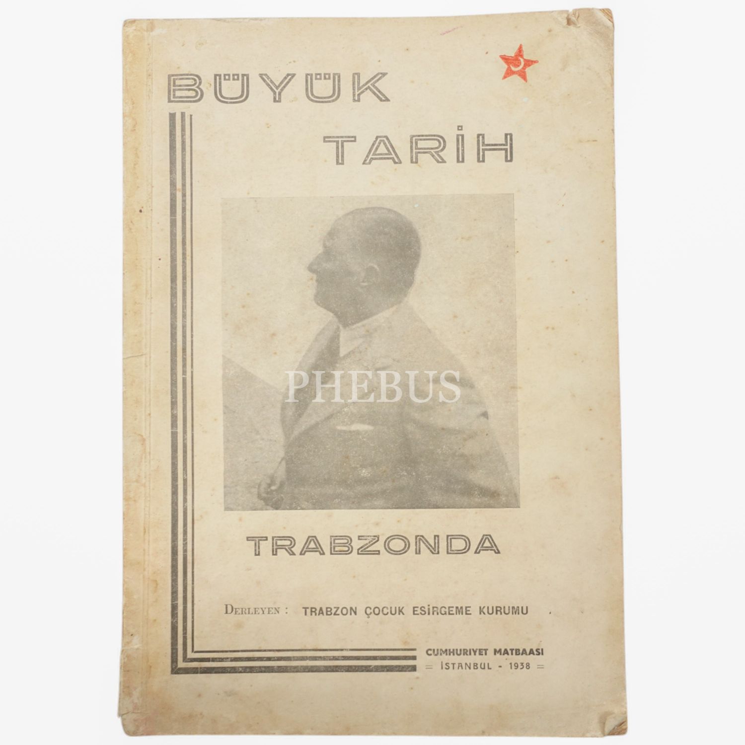 Trabzon Çocuk Esirgeme Kurumu tarafından neşredilen ve Mustafa Kemal Atatürk´ün Trabzon Ziyaretini konu alan BÜYÜK TARİH TRABZON´DA ktiabı, 1938, Cumhuriyet Matbaası, 75 sayfa, 17x24 cm...