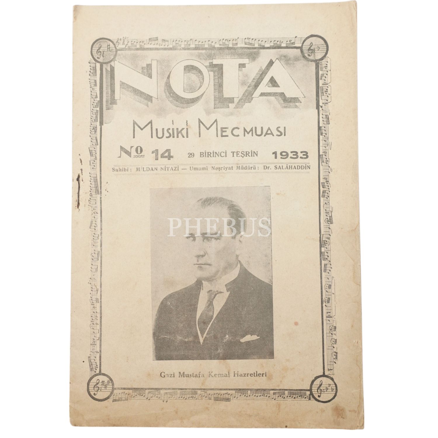 Mustafa Kemal Atatürk kapaklı NOTA MUSİKİ MECMUASI´nın 14. sayısı, 29 Ekim 1933, 17x24 cm...