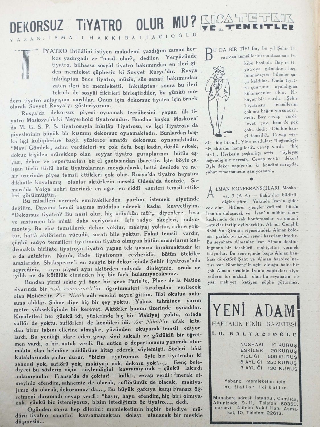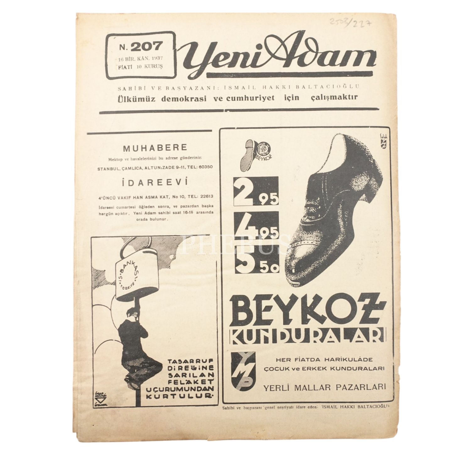 Mustafa Kemal Atatürk ve Hatay temalı kapağıyla YENİ ADAM dergisinin 16 Ekim 1937 tarihli 207. sayısı, 24x31 cm...