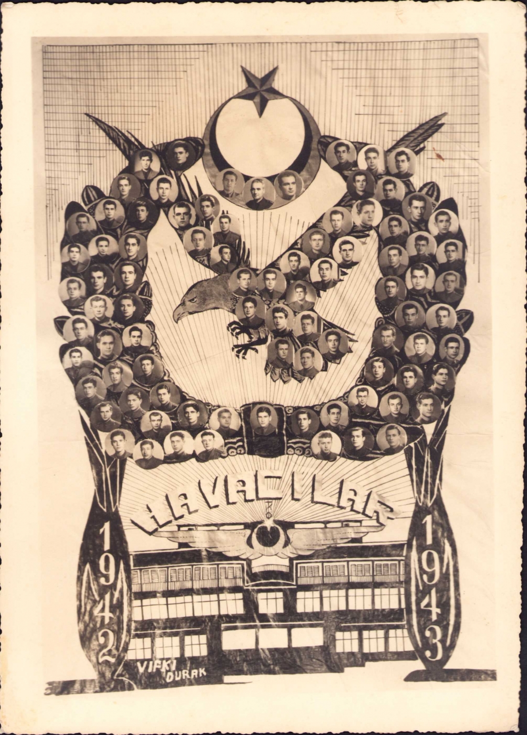 Ankara T. K. Okulu 1942 - 1943 havacılar, Foto Rekor damgalı, 16x23 cm