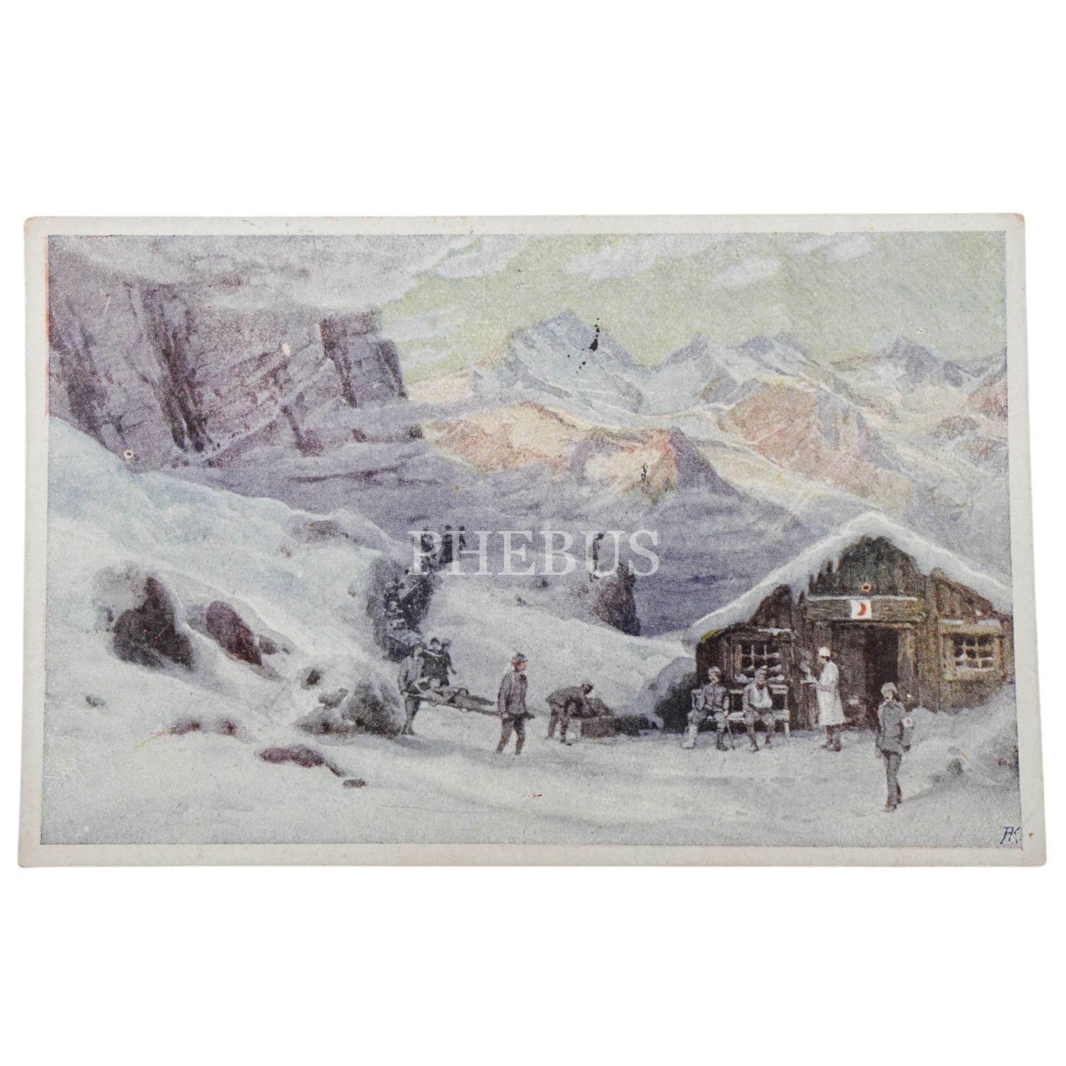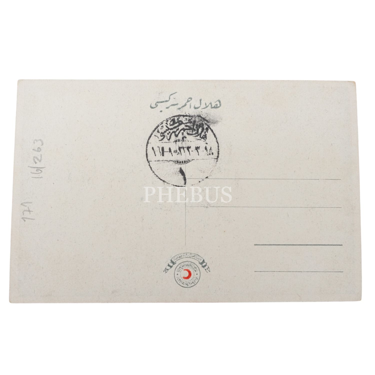 Hilal-i Ahmer Cemiyeti´nin cephe gerisinde kurduğu bir hastahane ve gaziler, 14x9 cm...