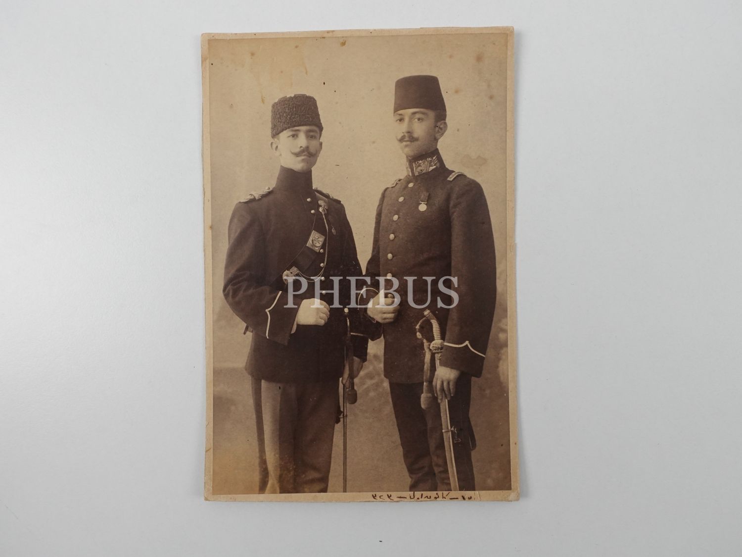 Türk tayyarecilik tarihinde bir döneme damgasını vurmuş olan tayyarecilerimizden Yüzbaşı Kemal Bey ve silah arkadaşının hatıra fotoğrafı, 13x20 cm...