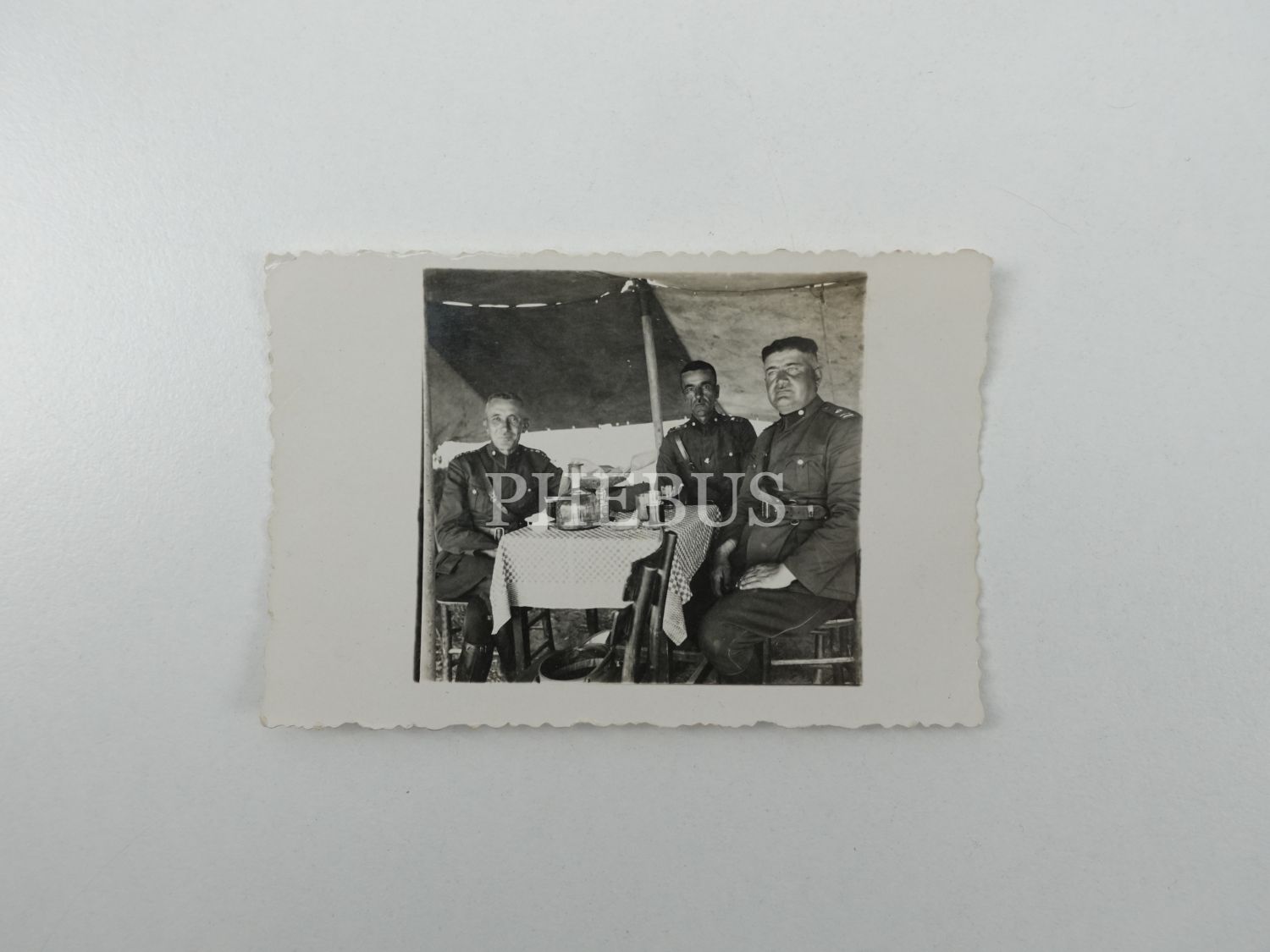 Cephe´de çadırda yemek yiyen subaylar, 9x6 cm...