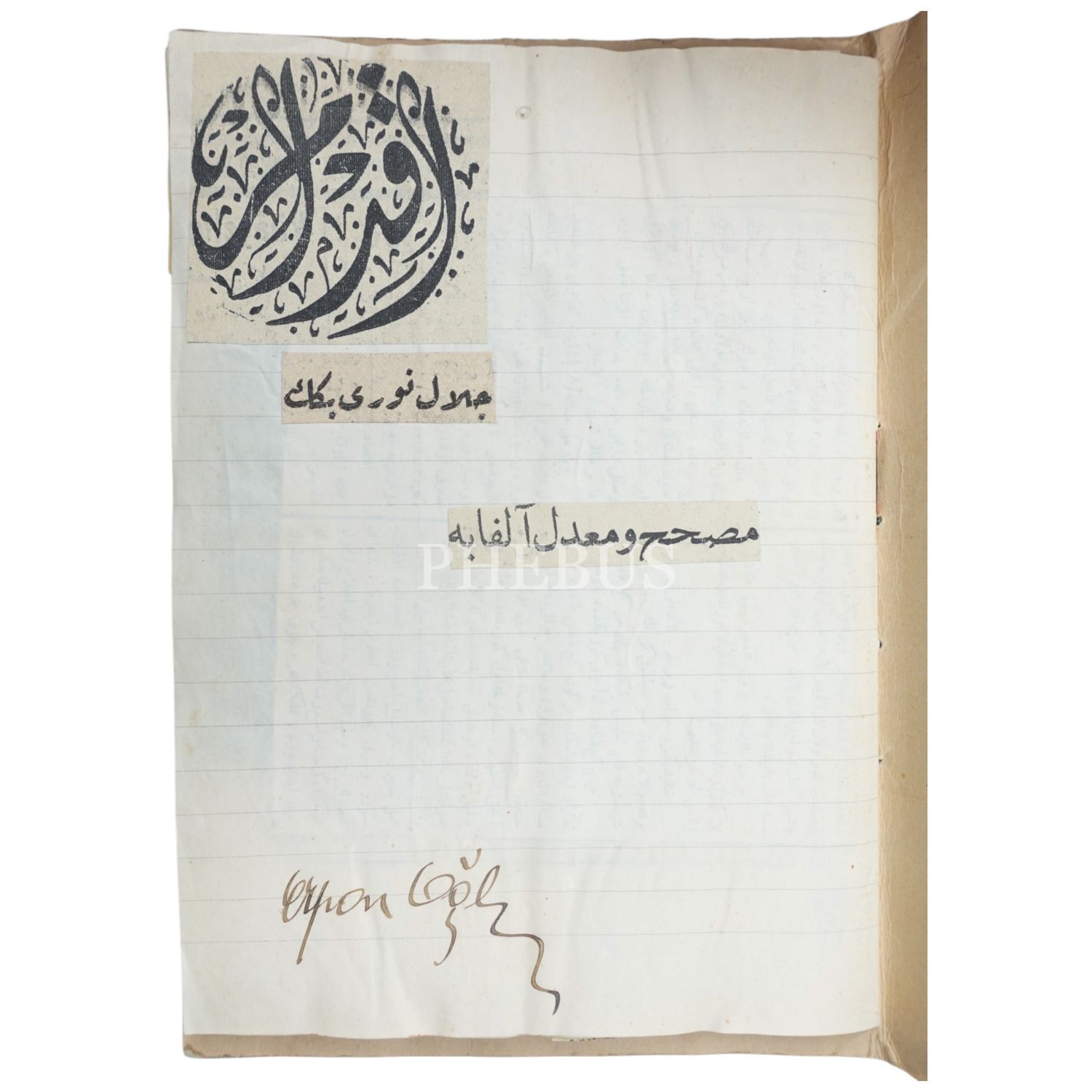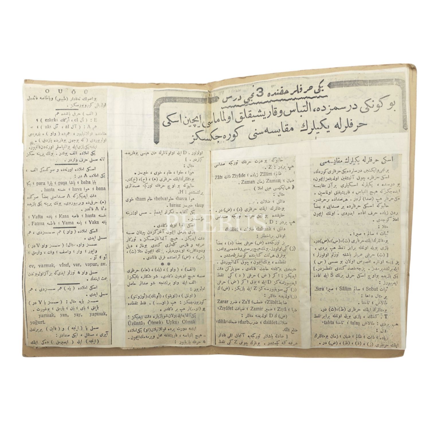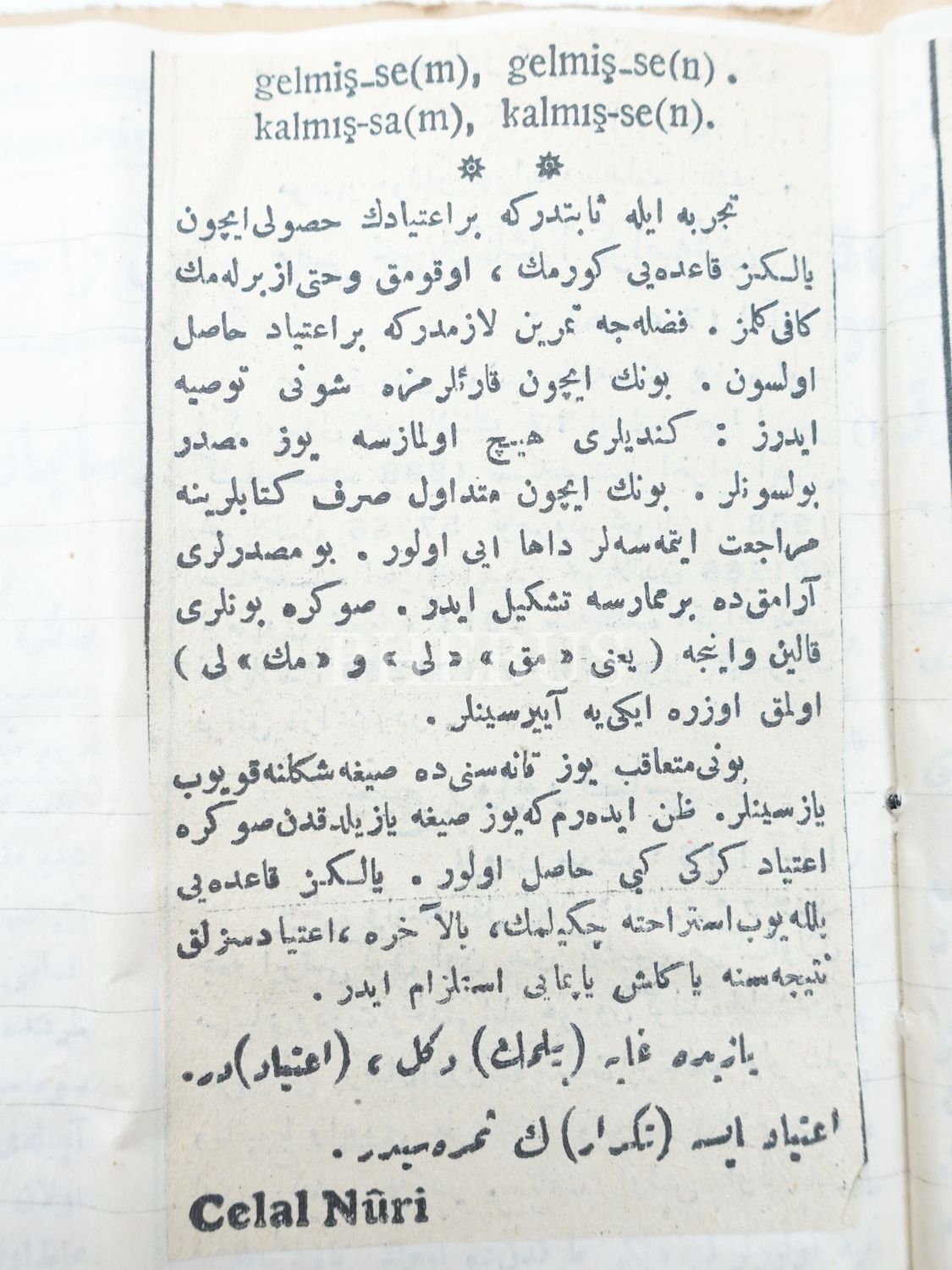 Celal Nuri tarafından yeni harflerin kullanımını göstermek amacıyla İkdam gazetesinde tefrika edilen derslerin bir araya getirilmesiyle oluşan defter, 1928, 15x22 cm...