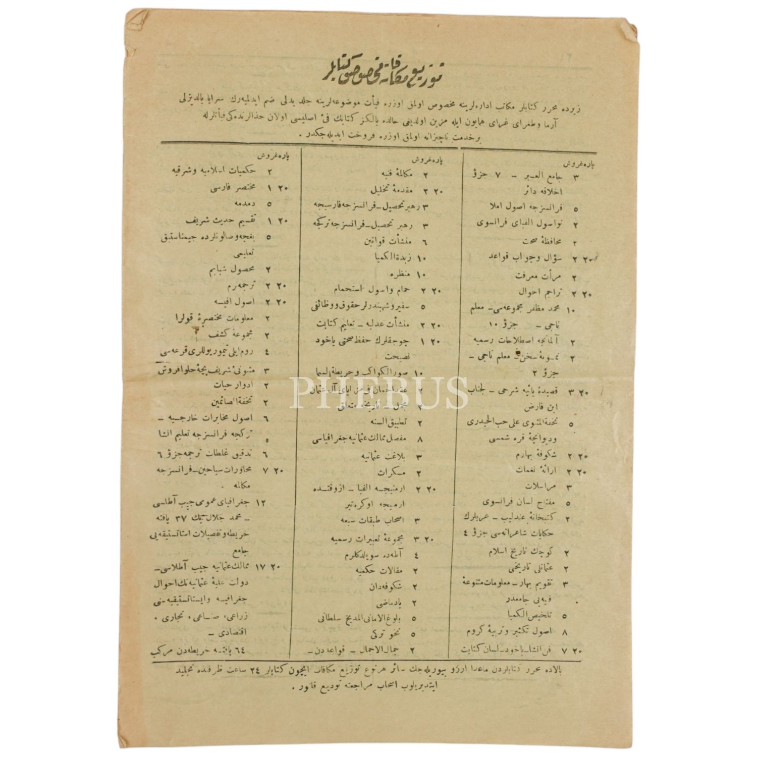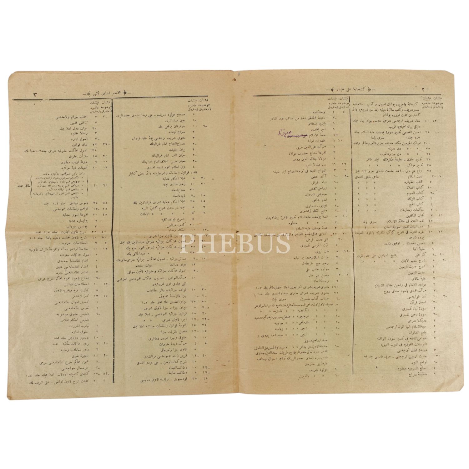 Bursa´da kartpostal ve kitap tüccarı Ali Haydar Efendi´nin kitap listesi, KİTAPHANE-İ ALİ HAYDAR, 22x31 cm...