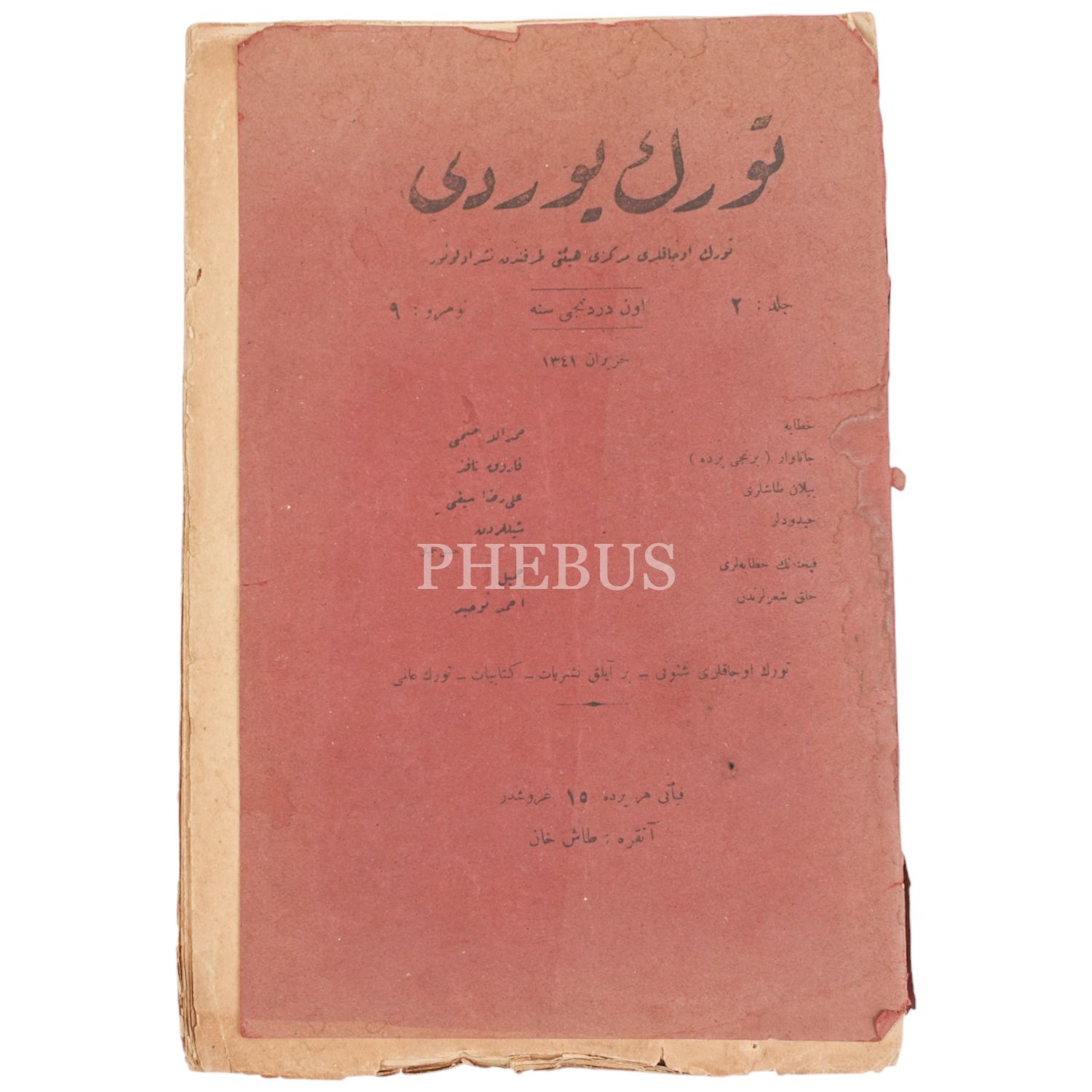 TÜRK YURDU DERGİSİ´nin Haziran 1341 tarihli 9. sayısı, 19x25 cm...