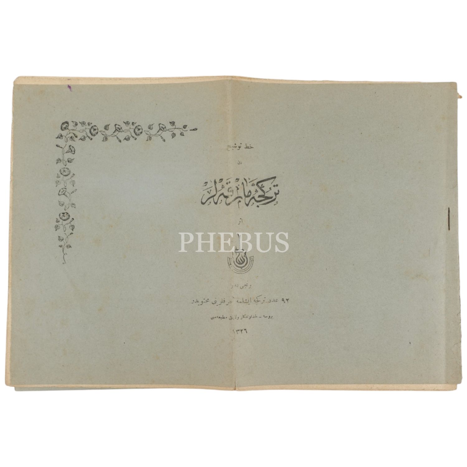 HATTI TEVŞİHDEN TÜRKÇE MARKALAR (92 adet Türkçe işleme harflerini muhtevidir.), Muhammed Reşad, 1326, 25x19 cm...