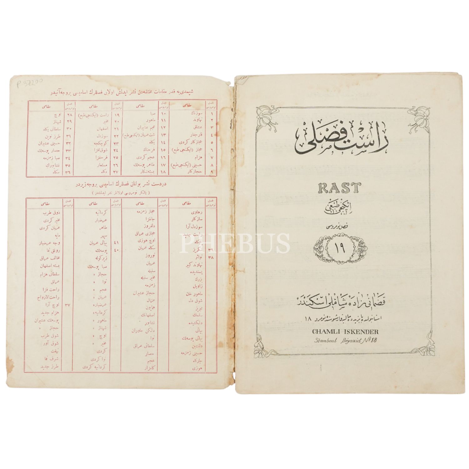 RAST FASLI (32 Parçadan Mürekkeb Peşrev, Beste, Kar, Şarkı, Saz Semaini Muhtevidir. Muallim İsmail Hakkı Bey tarafından tertip ve tashih olunmuştur.), editör: Şamlı İskender, 40 sayfa, 20x28 cm...