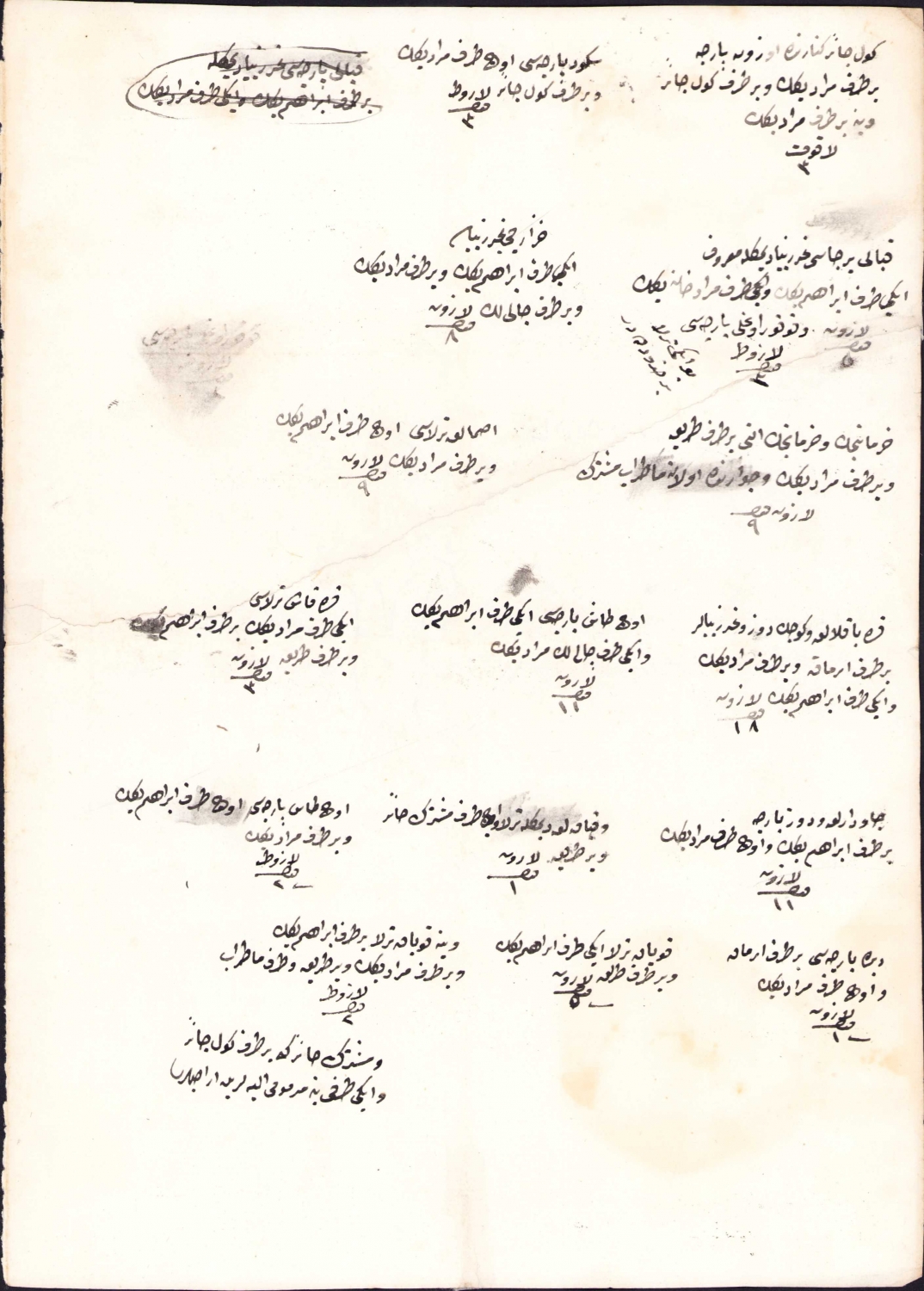 Osmanlıca hisseli tapu kayıtları, tamirli, 23x33 cm