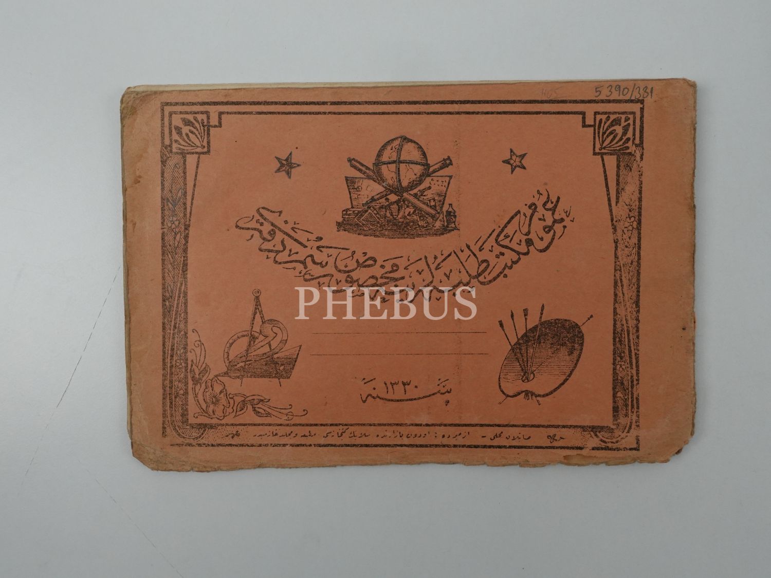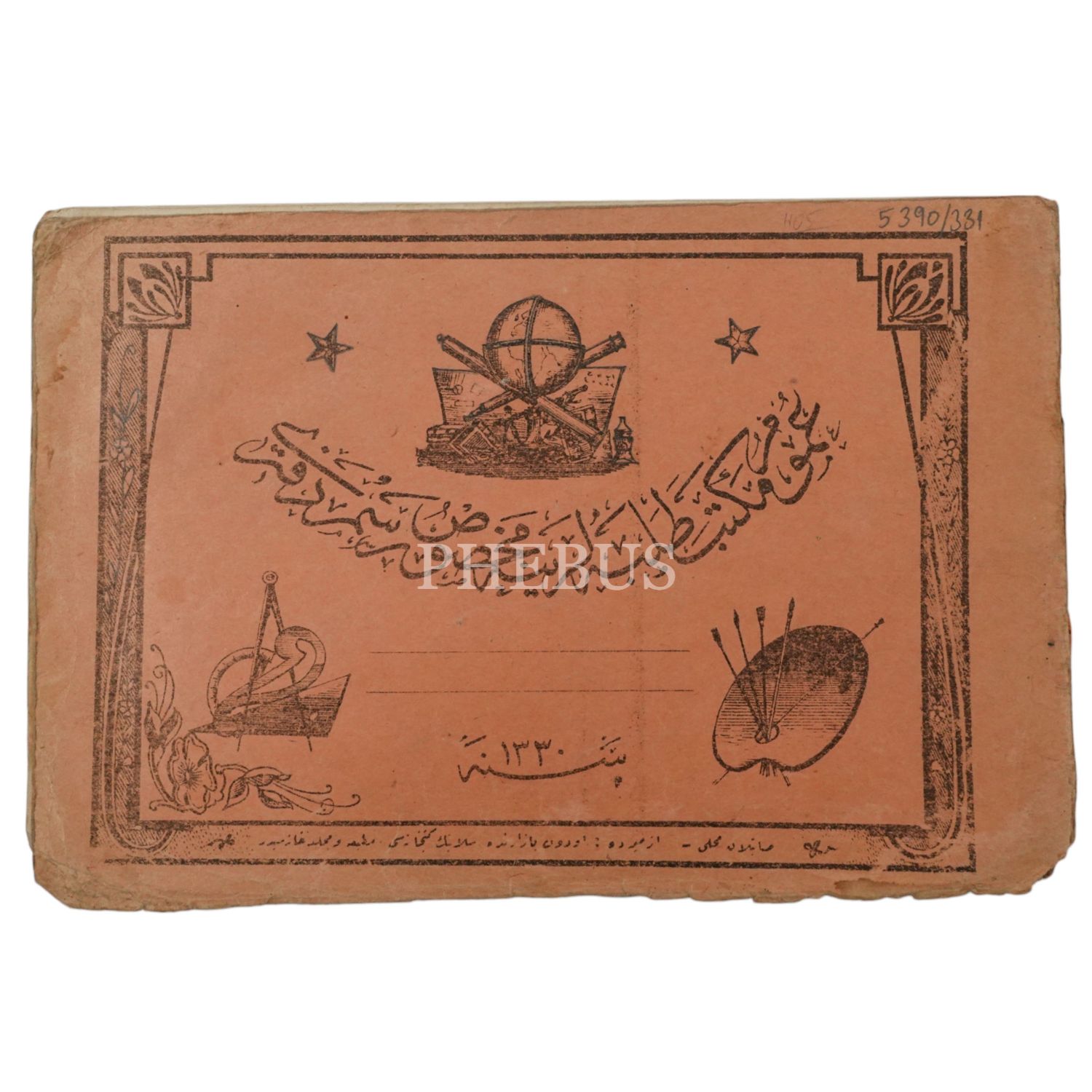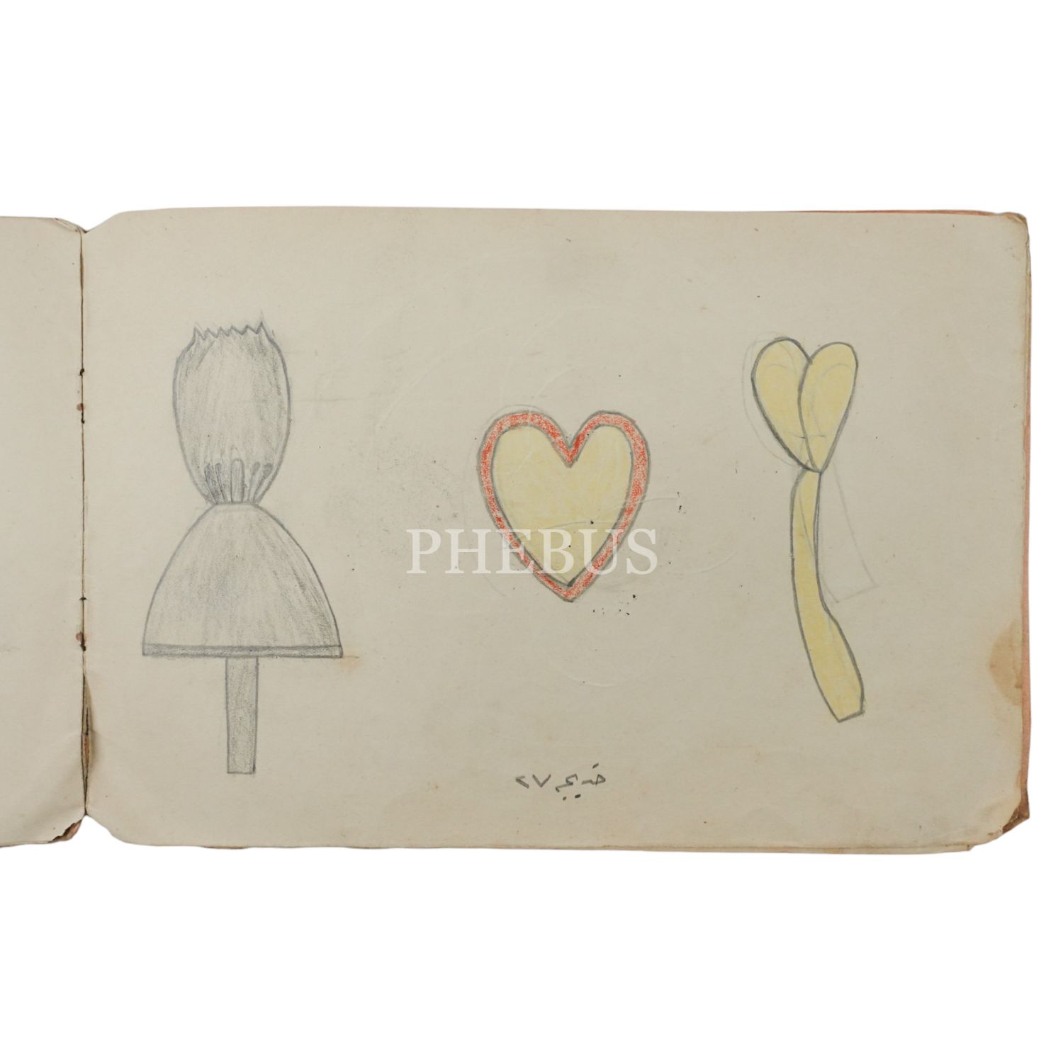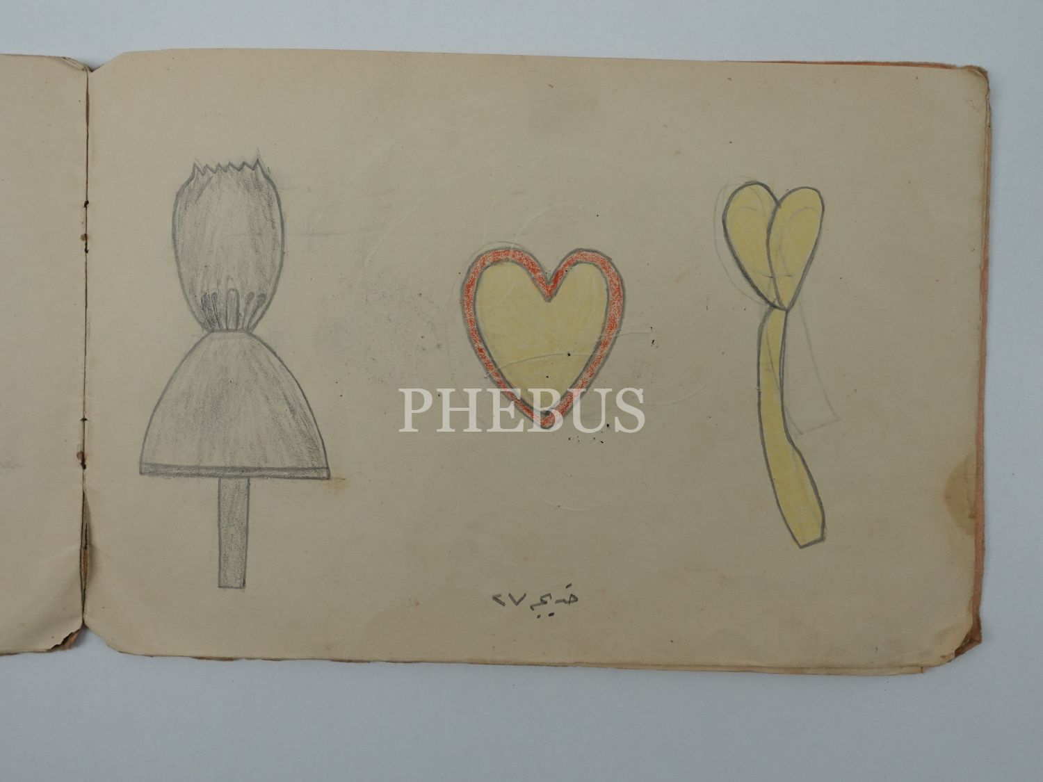 Osmanlıca "RESİM DEFTERİ VE EL İŞLERİ" başlıklı her sayfası çizimlerle dolu defter, 12 sayfa, 28x19 cm...