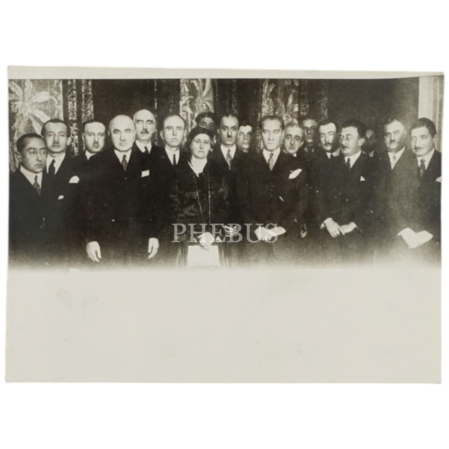 Mustafa Kemal Atatürk´ün de aralarında bulunduğu bir heyetin fotoğrafı, 14x11 cm...