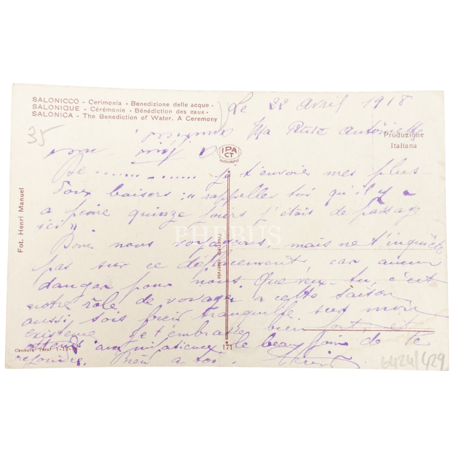 Selanik´te bir liman, "Salonique - Ceremonie Benediction des Aux", 14x9 cm..