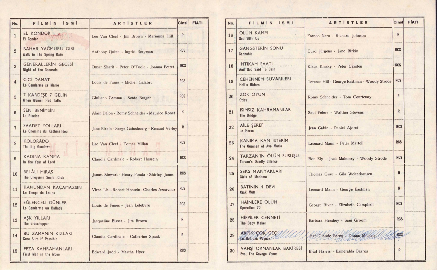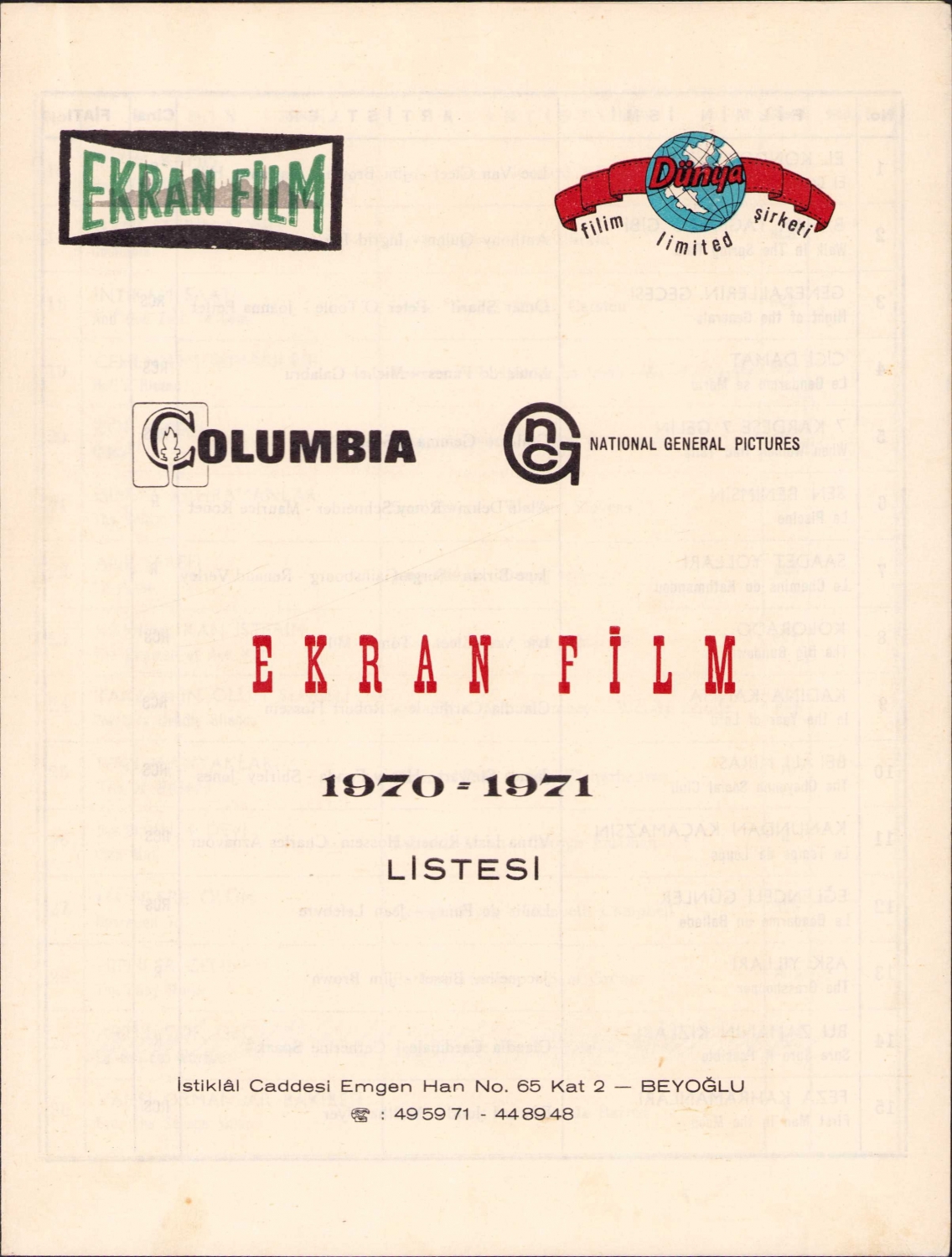 Ekran Film 1970 - 1971 film listesi, 4 sayfa, 20x26 cm