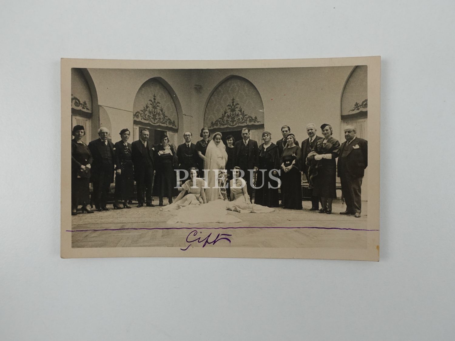Halit Ziya Uşaklıgil, Şükrü Kaya, Tevfik Rüştü Aras, Kazım Özalp, Bülent Uşaklıgil ve Yunus Nadi bir düğünde, 14x9 cm...