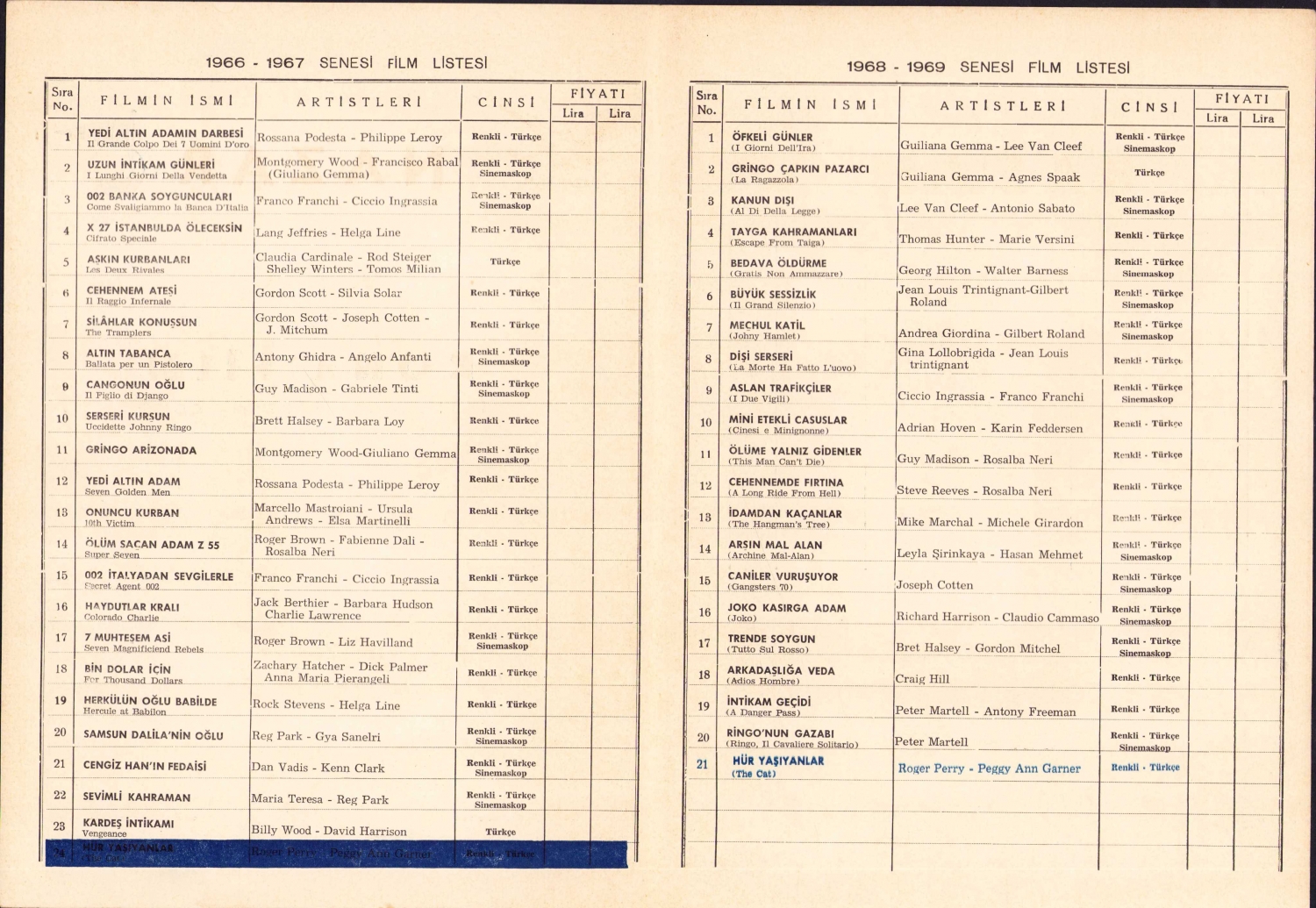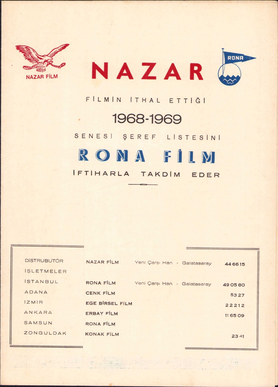 Rona Film 1968 - 1969 film listesi, 4 sayfa, 20x28 cm