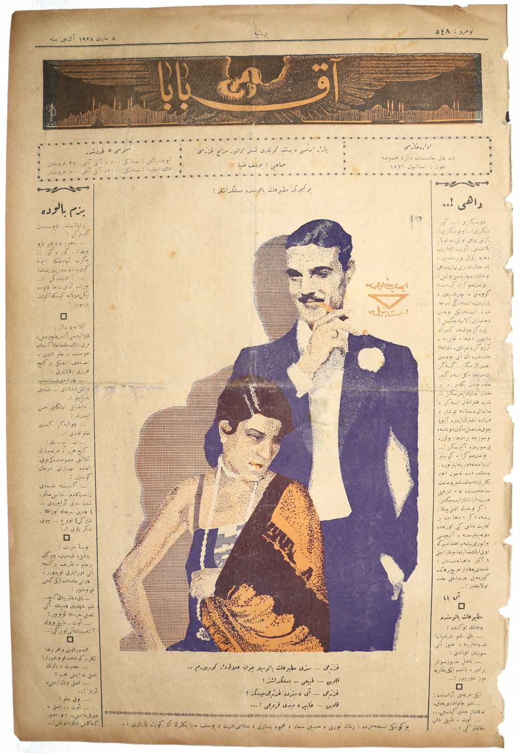 Osmanlıca Akbaba mizah gazetesi, 1928, İhap Hulusi kapak, resimli, cilt çıkması, 4 sayfa, 30x45 cm