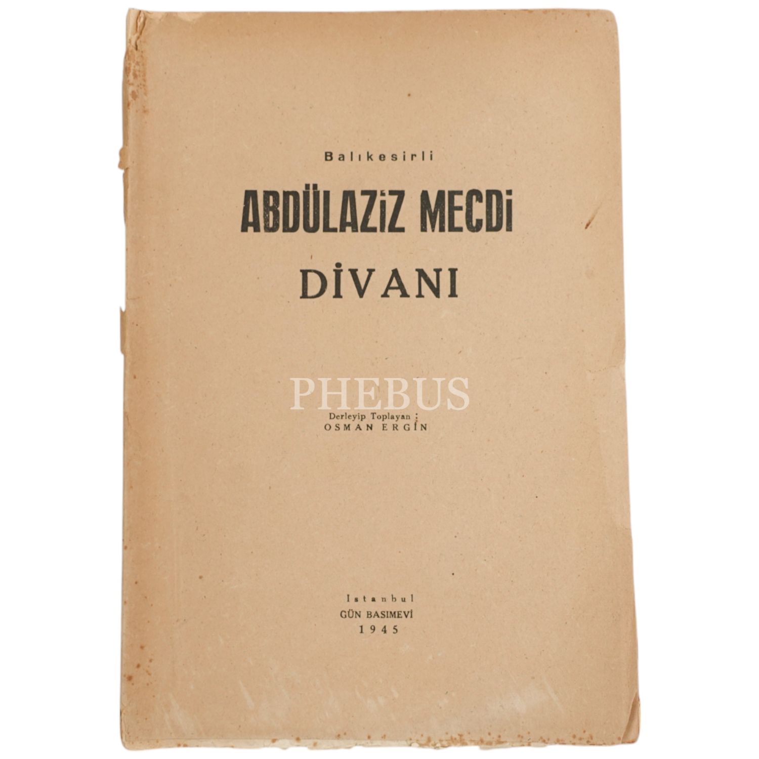 BALIKESİRLİ ABDÜLAZİZ MECDİ DİVANI, Osman Ergin, 1945, Gün Basımevi, 156 sayfa, 18x25 cm...