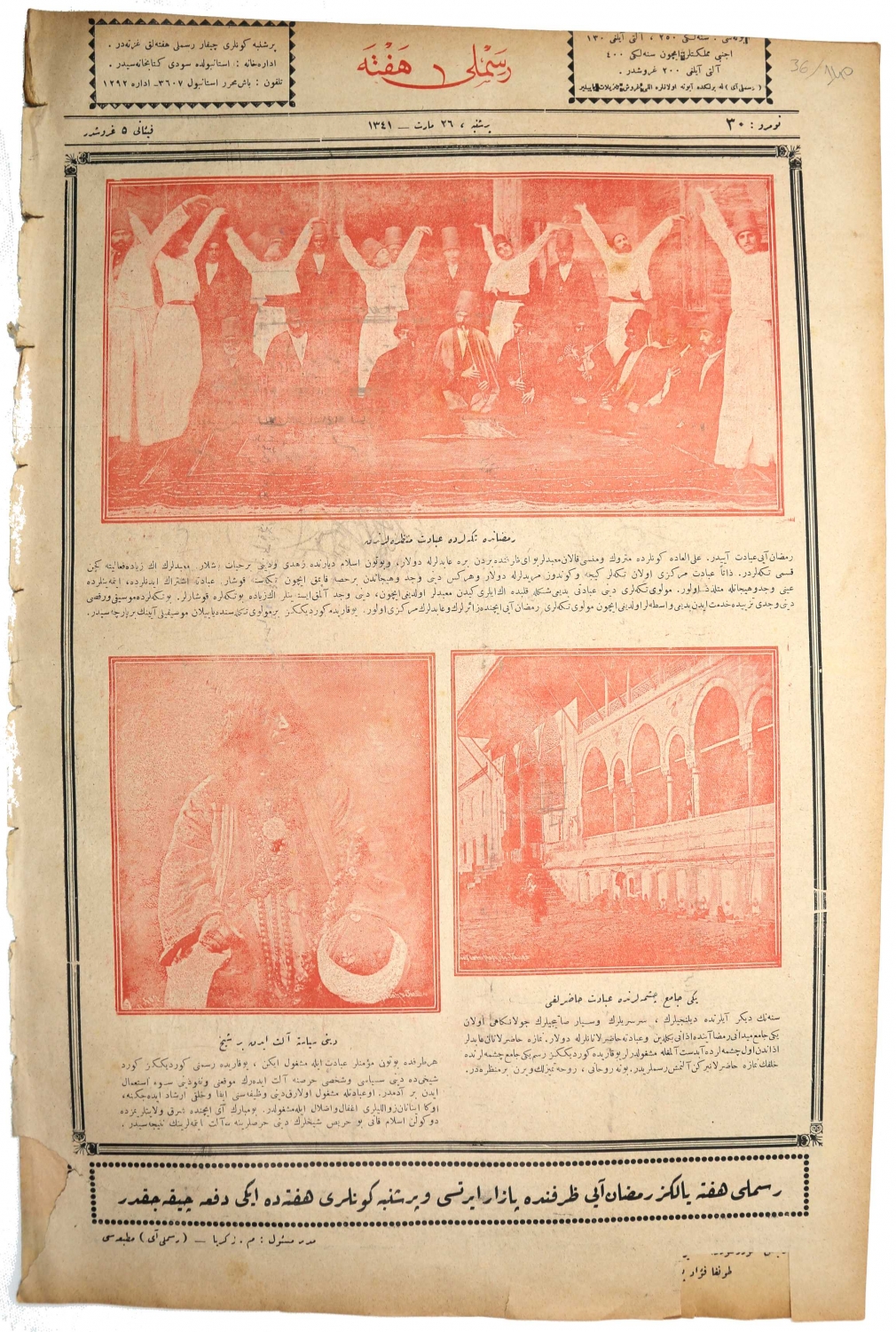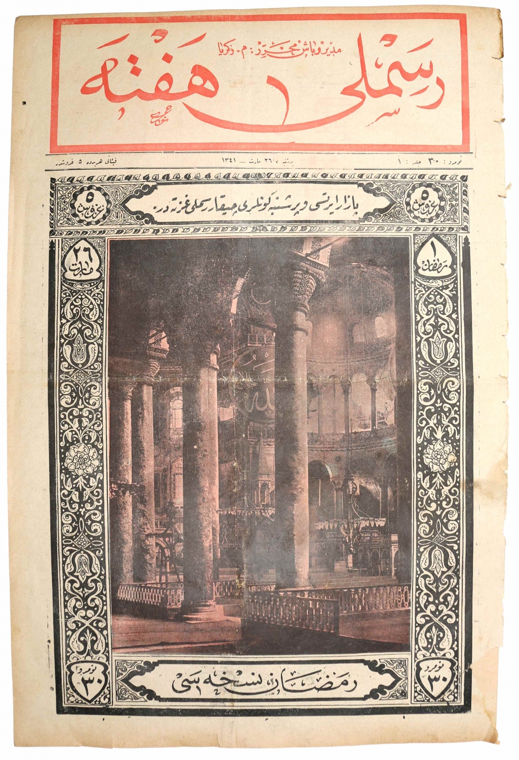 Osmanlıca Resimli Hafta gazetesi, Ramazan nüshası, kapak Sultanahmet Cami, resimli, 8 sayfa, 30x45 cm