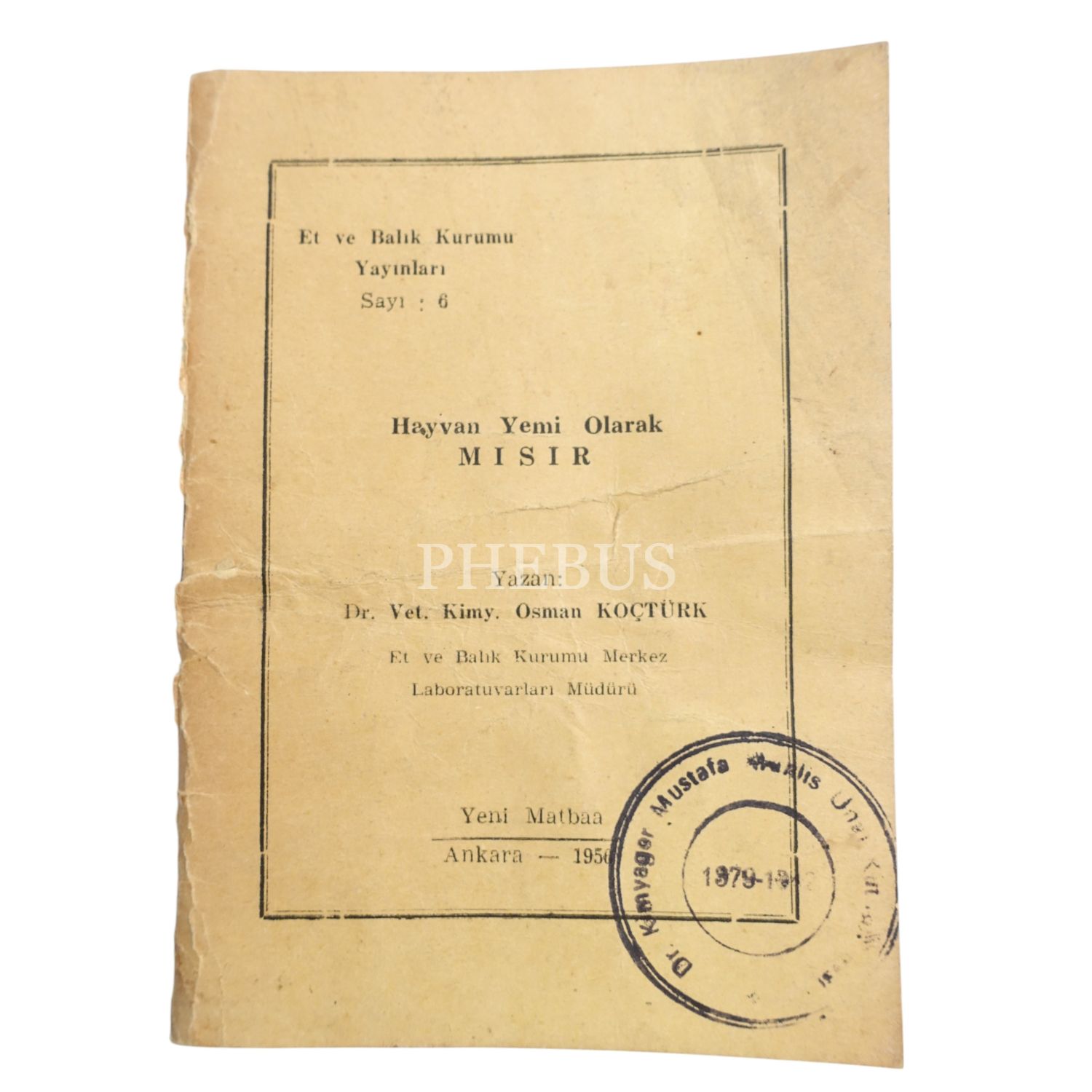 HAYVAN YEMİ OLARAK MISIR, Osman Koçtürk, 1956, Et ve Balık Kurumu Yayınları, 29 sayfa, 10x14 cm...