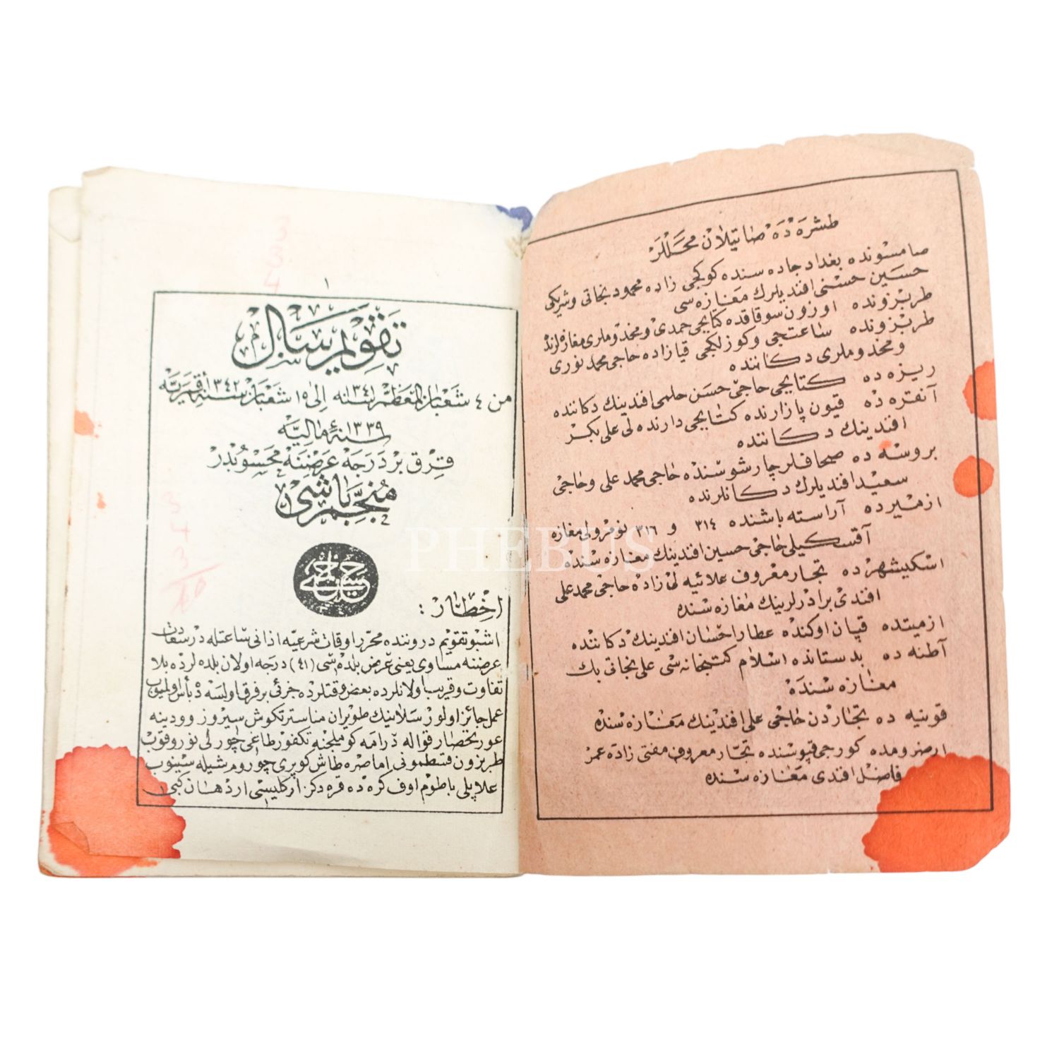 TAKVİM-İ SAL, Müneccimbaşı Hüseyin Hilmi, 1339, 10x12 cm...