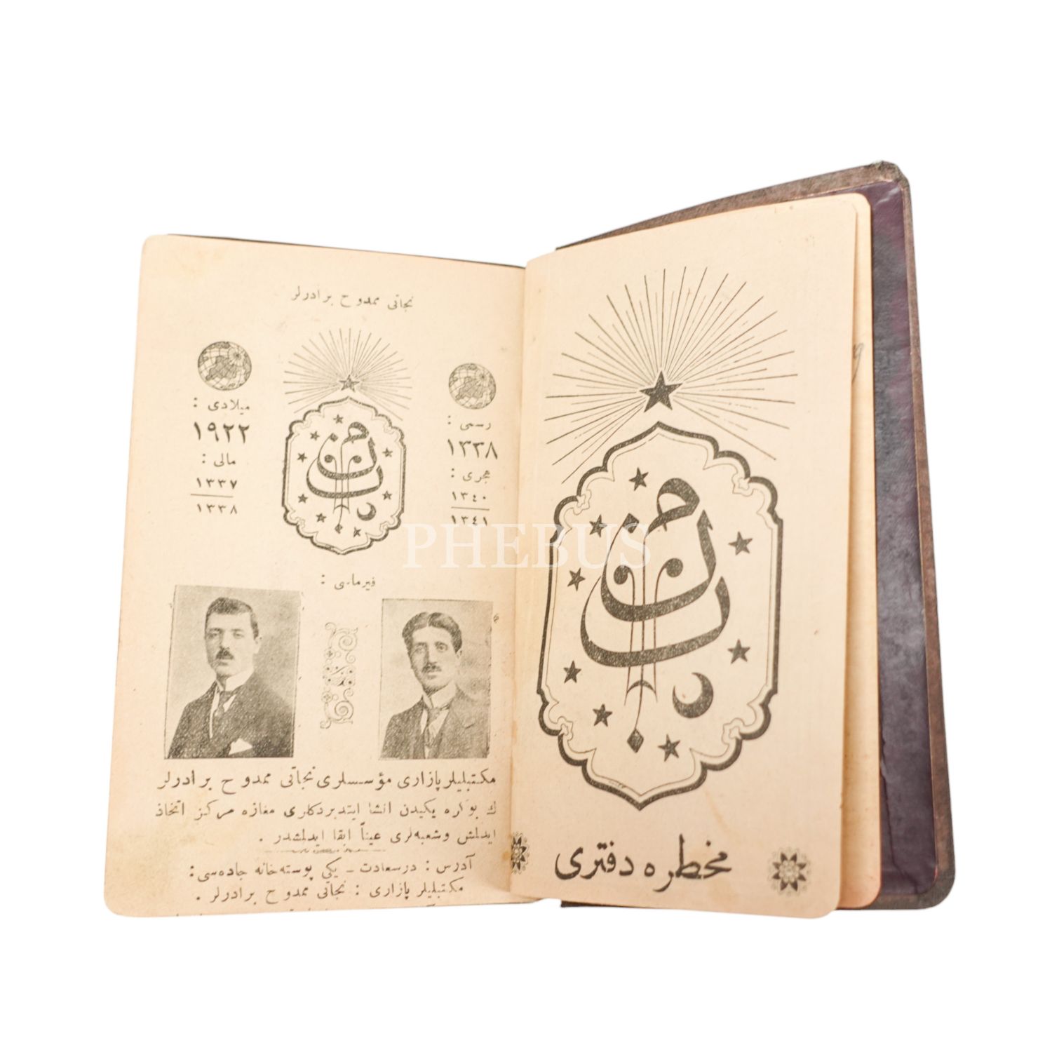 Osmanlıca NECATİ, MEMDUH BİRADERLER MUHTIRA DEFTERİ, 1338, 9x15 cm..