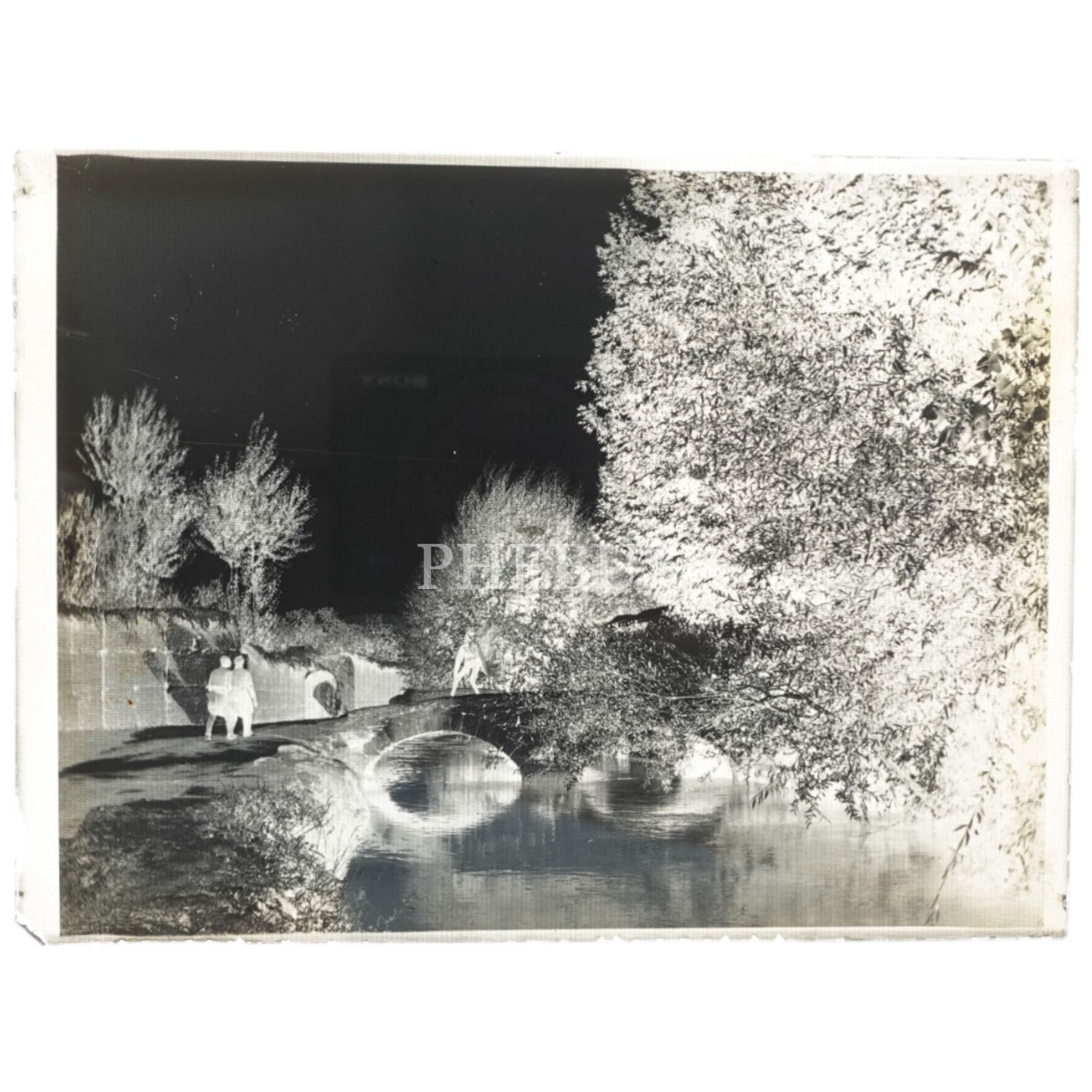 Bir köprüden geçmekte olan iki beyefendinin görüldüğü cam negatif fotoğraf, 12x9 cm...