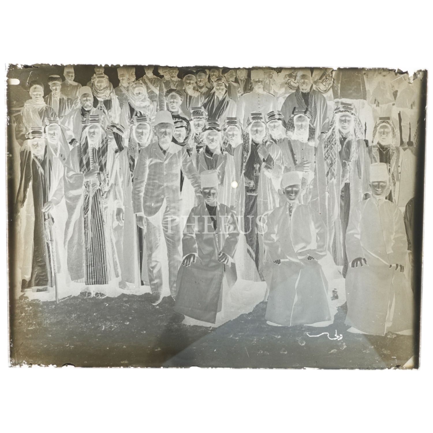 Bir grup Osmanlı subayı ve Arap yerlilerinin cam negatif fotoğrafı, 18x13 cm...